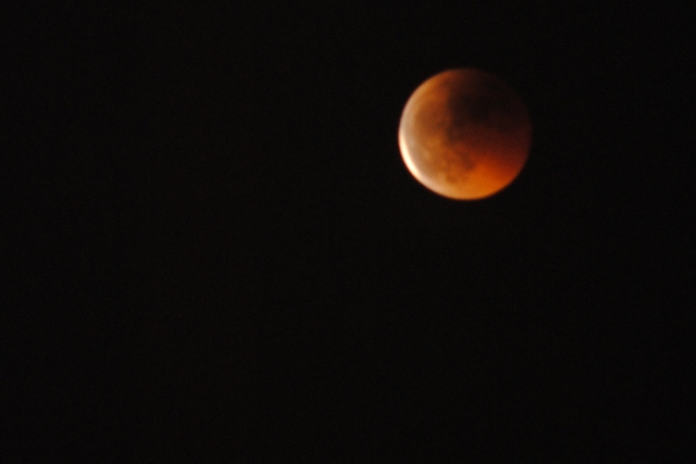 No puede definirse de otra manera el eclipse de luna visto hoy desde muchos puntos de España. Desde Parquesol, gracias a la elevación del terreno la vista de la Luna era inmejorable. Y eso que al principio nos costo bastante verlo, por que todos mirábamos al horizonte. Al principio la vimos muy oscura pero poco a poco el eclipse se hizo mucho más evidente. Estamos deseando que vuelva a ocurrir…