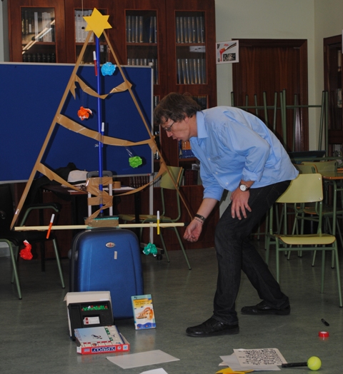 Desde el departamento de Inglés del Colegio nos han organizado un Cuenta Cuentos interactivo para los niveles de 1º y 2º de ESO. Arwed Funch, profesor nativo, nos ha demostrado cómo podemos hacer un árbol de navidad sin necesidad de gastarnos demasiado dinero,con materiales reciclados que hará las delicias de los más ecologistas.