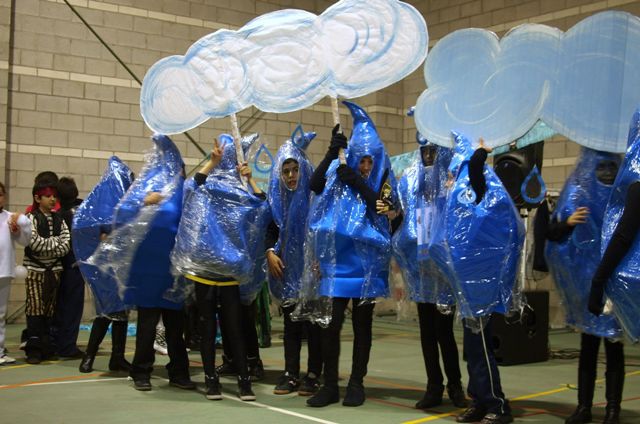 Nosotros en el colegio nos disfrazamos en el Polideportivo, donde disfrutamos muchisimo con la música y el baile. Como no podía ser de otra manera, este año la temática de los disfraces era el agua, ya que nuestro lema desde principio de curso es «Cataratas de ideas».
