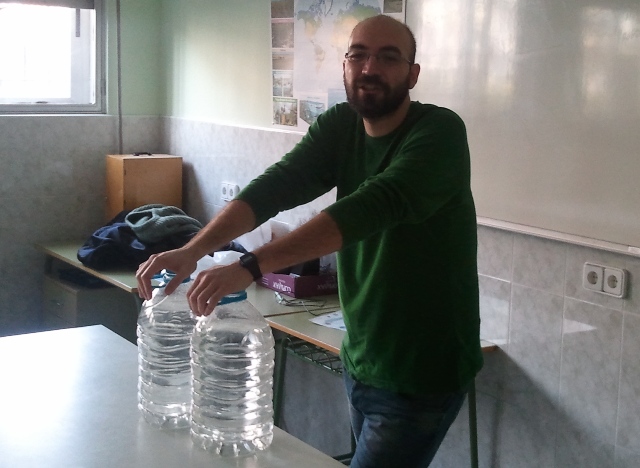 Alvaro, de la Asociación Juvenil El Parque, ha estado esta mañana explicándonos a los alumnos de 4º ESO del Colegio, la historia de como las empresas de agua embotellada nos han estado comiendo la cabeza para que consumamos su agua embotellada.