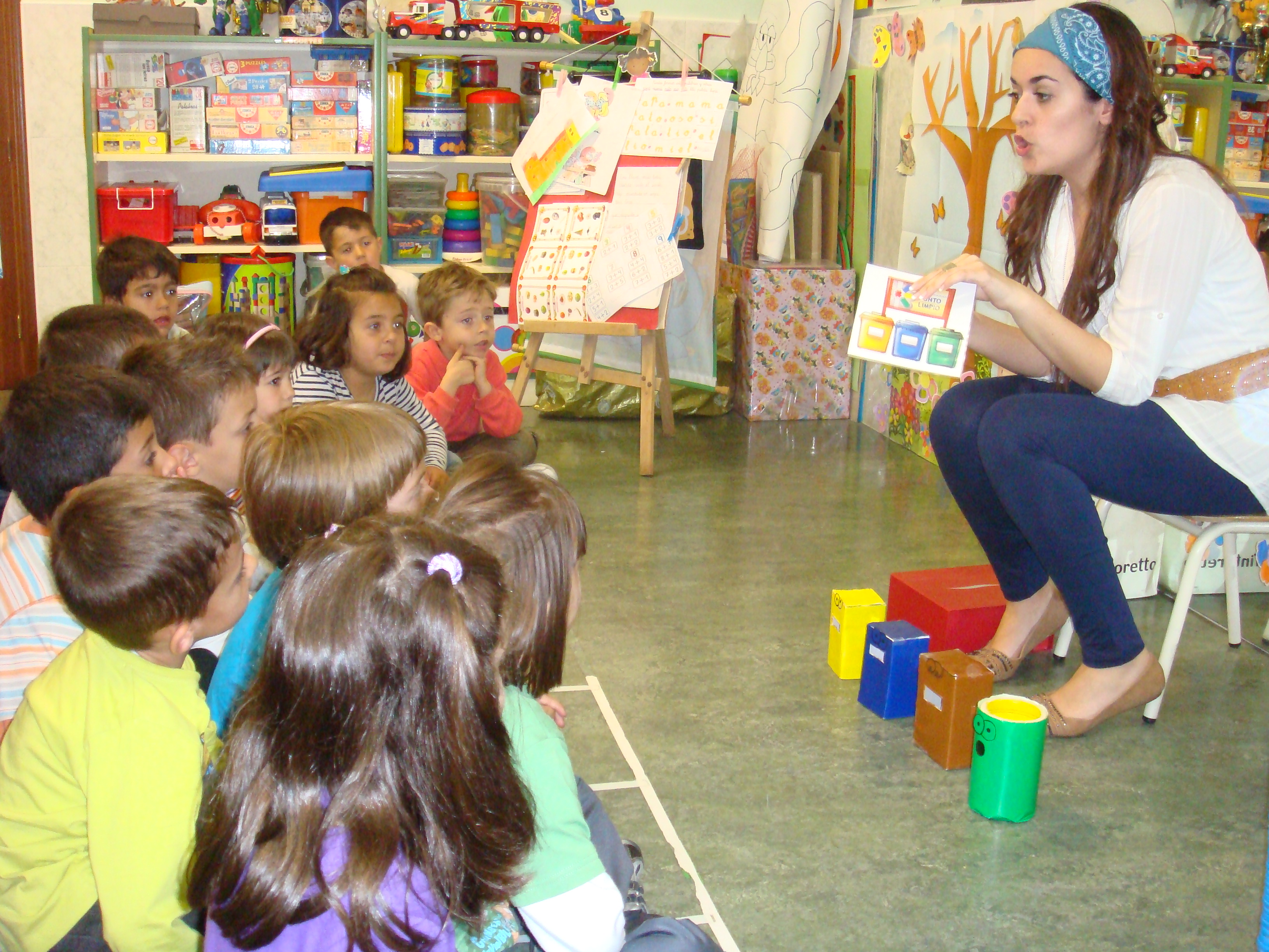 Gracias a Desirée (alumna de prácticas), los alumnos de 5 años han participado en una actividad que ella ha dirigido donde se pretendía sensibilizar a los niños en la importancia del reciclado.