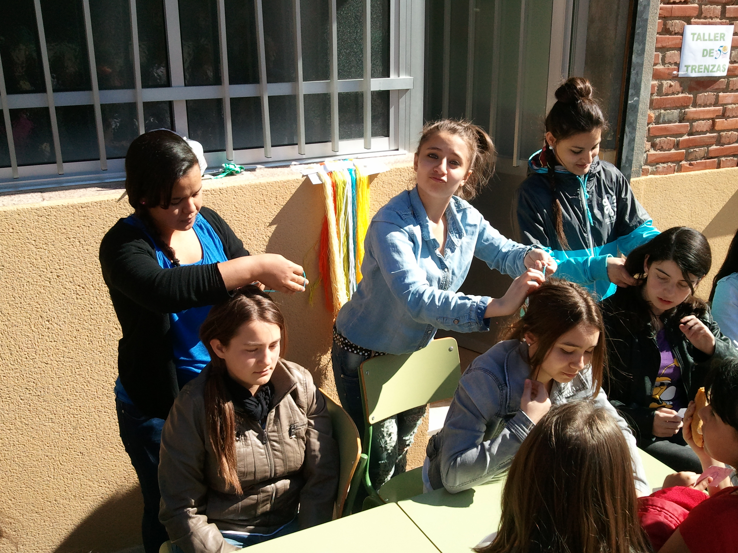 Después de comerlos, ha habido talleres de chapas y de trenzas con los profesores más creativos del colegio como monitores.