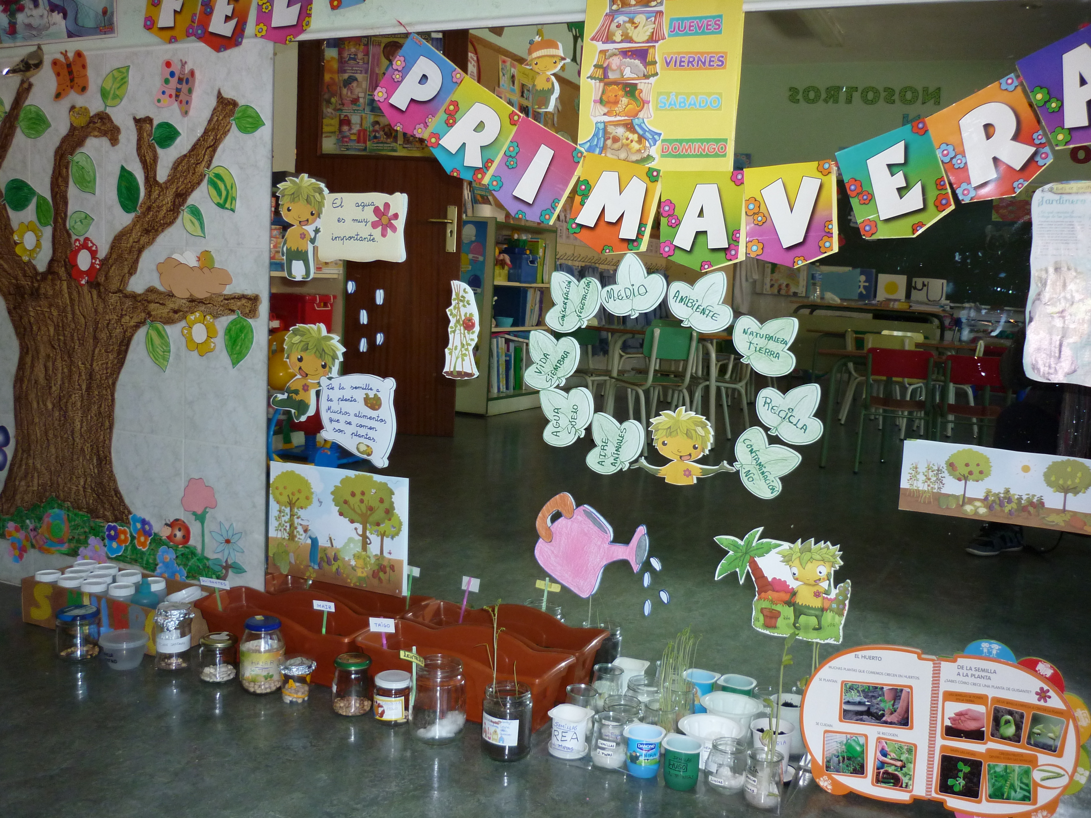 Desde que dio comienzo la primavera, en las clases de Educación Infantil, intentamos transmitir a los niños el entusiasmo por esta estación. Para ello, decoramos las clases implicando a los alumnos en ello, leemos cuentos, aprendemos poesías, jugamos a ser jardineros y jardineras, utilizamos unas palabras claves como agua, semilla, jardín, plantas, flores, tierra, naturaleza, no contaminación, etc.