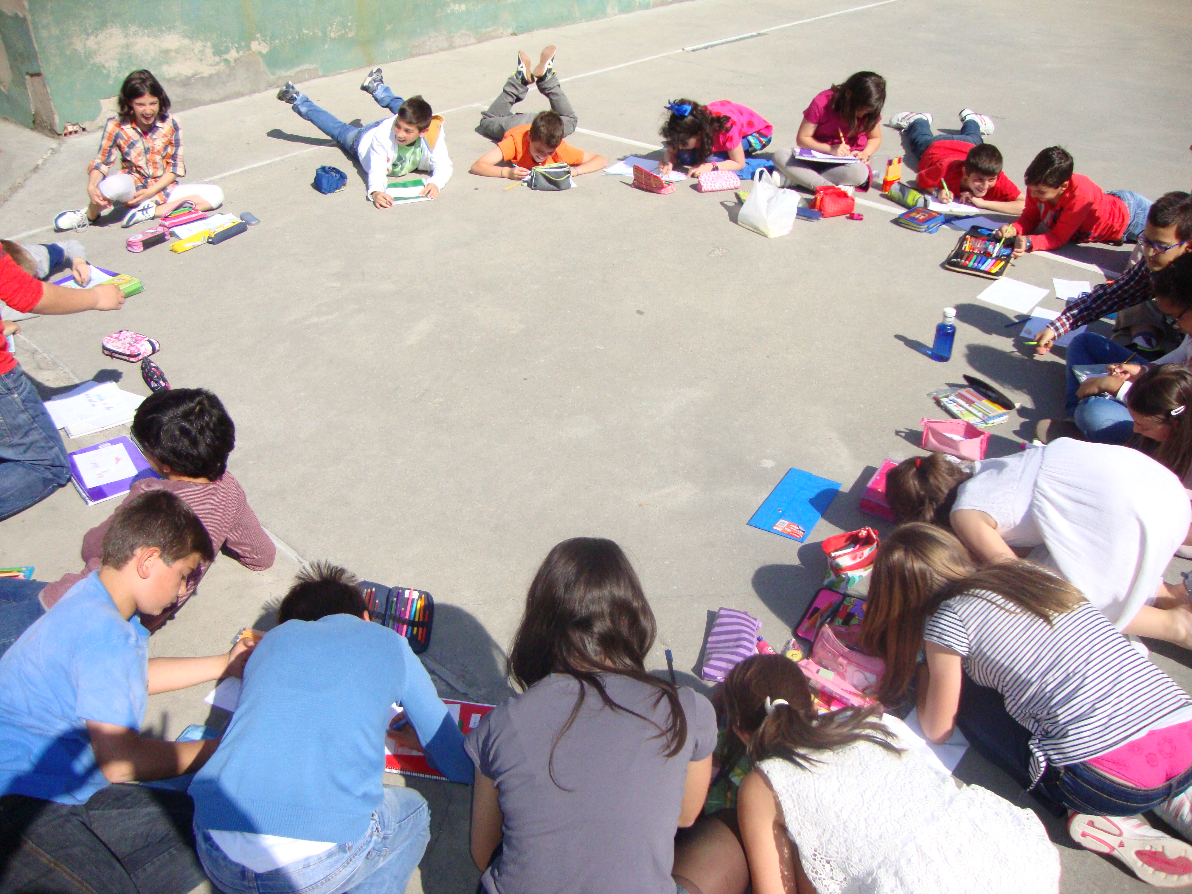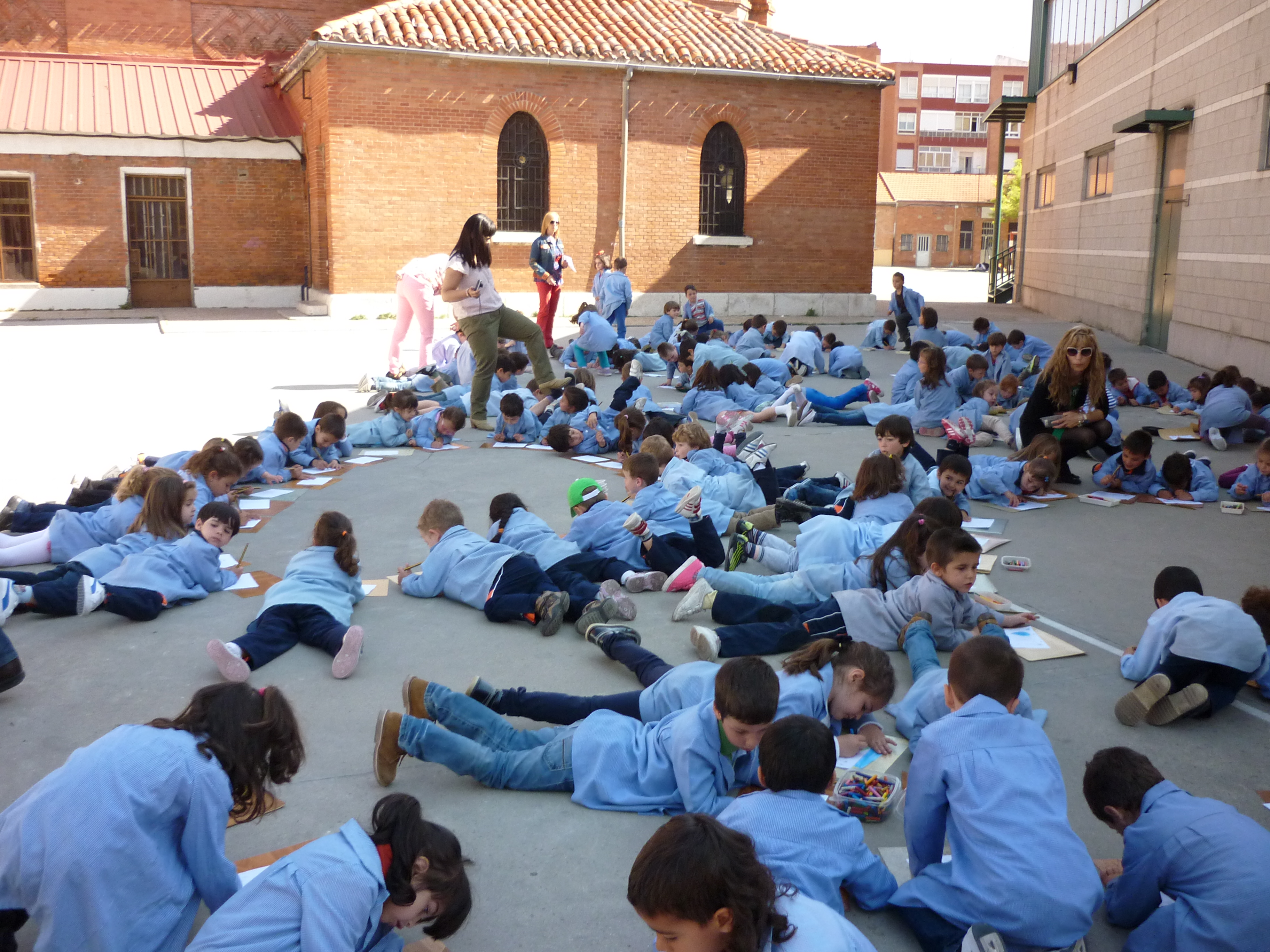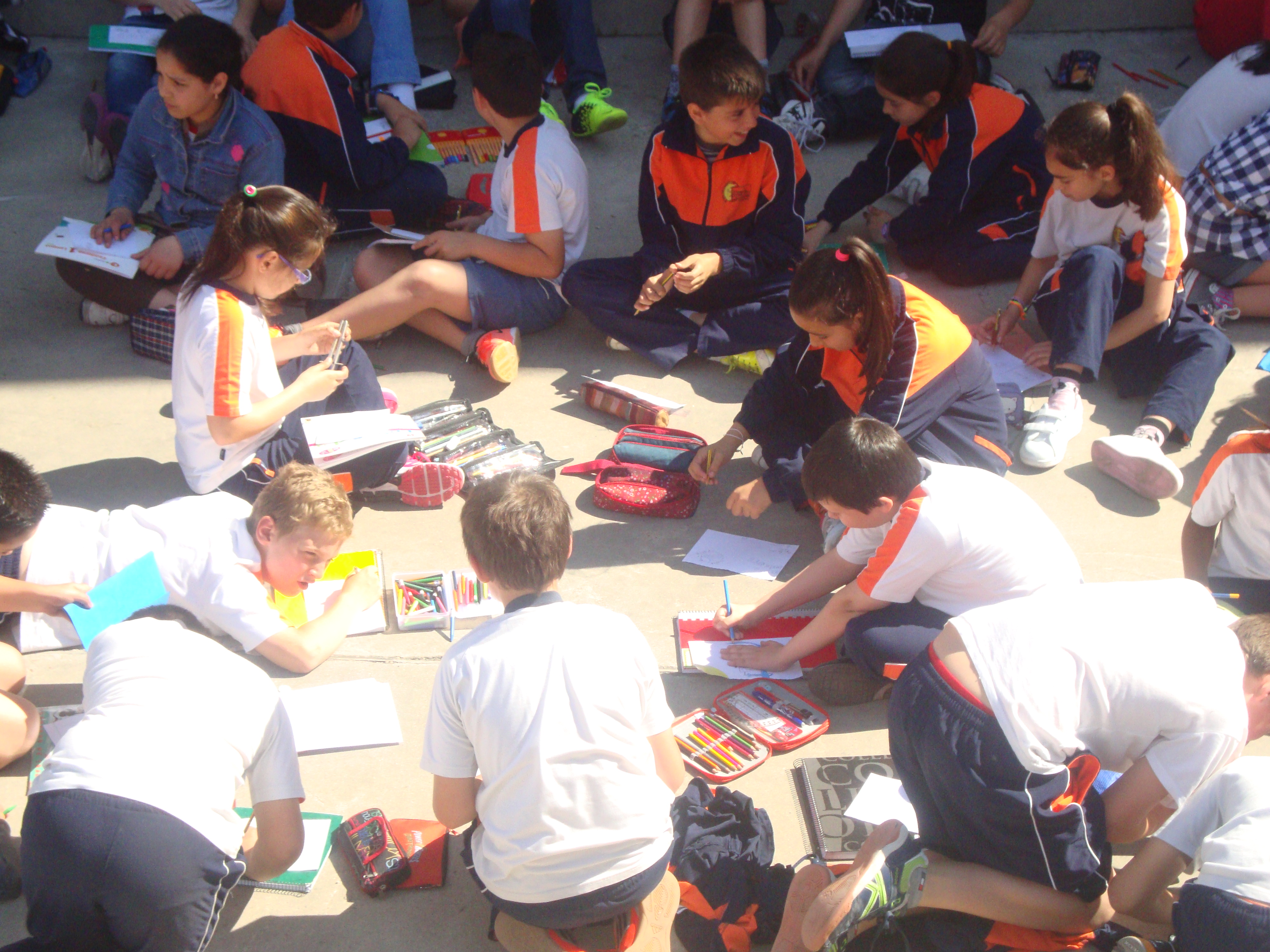 A continuación, volvimos a nuestro patio y allí realizamos, al aire libre y en el suelo, el Concurso de Pintura Ambiental.