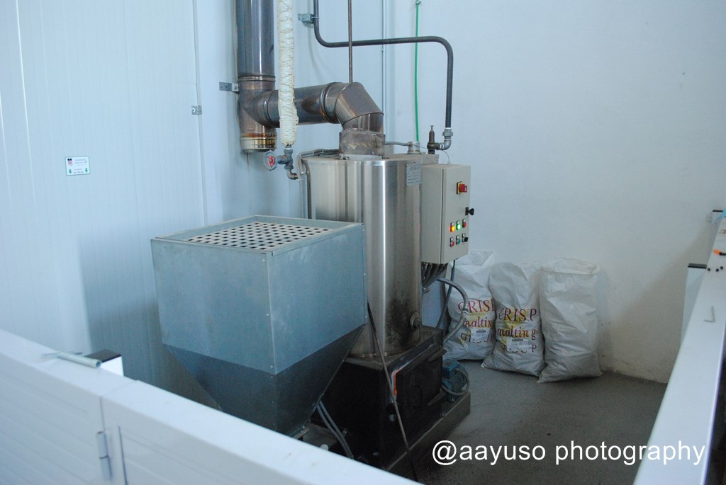 Lo primero que nos enseñaron es el generador de vapor de biomasa, que funciona con pellets de una empresa situada en el propio pueblo. De esta forma colaboran con el tejido empresarial del municipio y producen menos contaminación al no tener que recorrer los pellets grandes distancias.