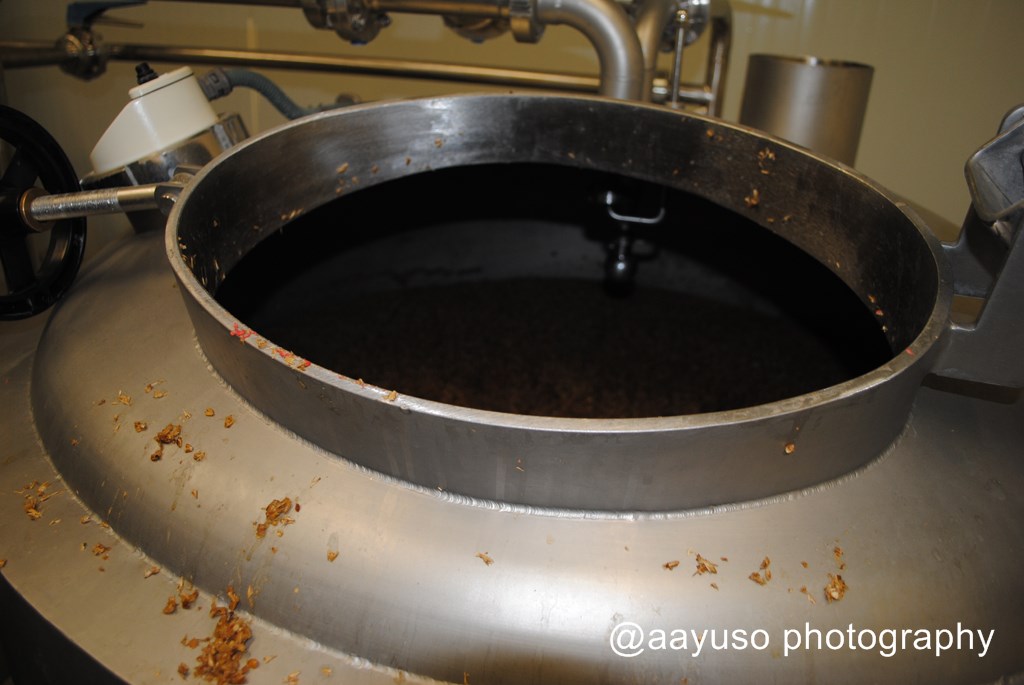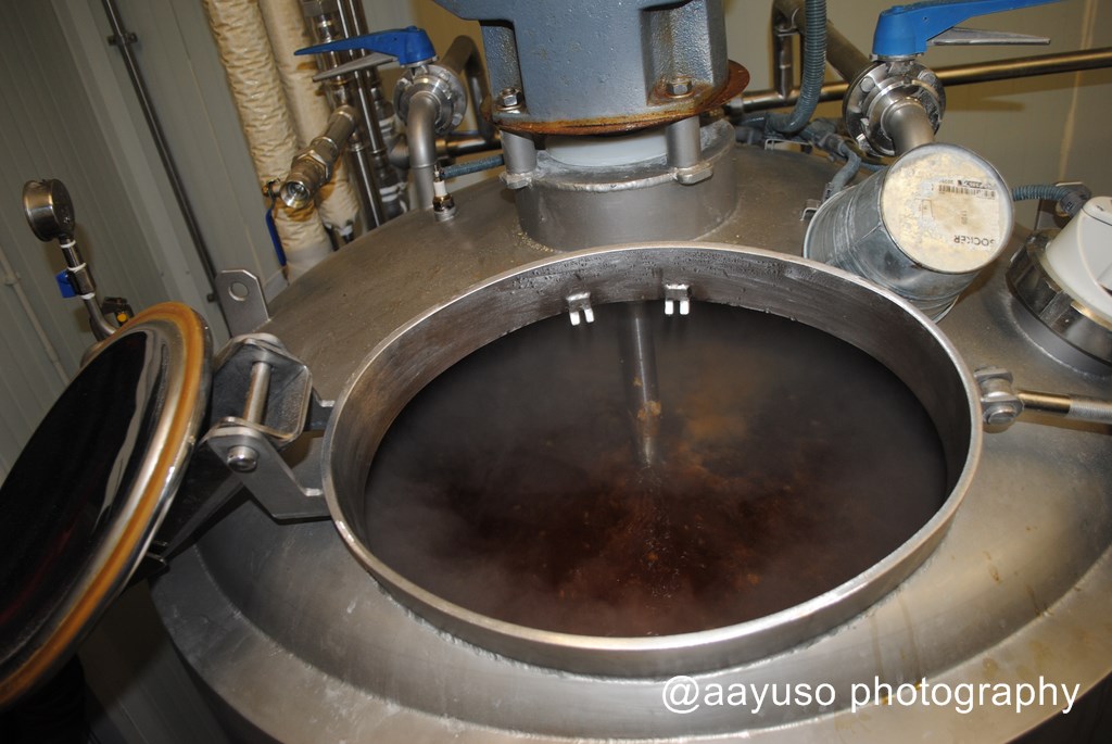 El primer paso del proceso es cocer a fuego lento las maltas en agua, ya sean de cebada o de trigo, según el tipo de cerveza que se quiera obtener. El agua la toman de la red de abastecimiento y la someten a un proceso de ósmosis inversa y a otro con lámpara ultravioleta para que todos los lotes salgan lo más homogéneos posibles. En este paso, las maltas liberan sus azucares, dándole un sabor dulce a la mezcla. Una vez que haya cocido suficientemente se coloca en otra máquina que simplemente cuela y separa la parte líquida de los restos de malta de cebada o trigo que tenemos. El proceso de colado se repite varias veces. Para pasar a la siguiente fase es necesario hacer descender la temperatura rápidamente a través de un serpentín con agua fría.