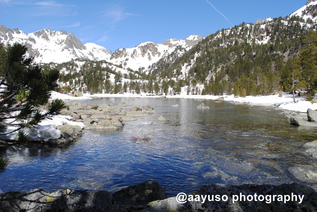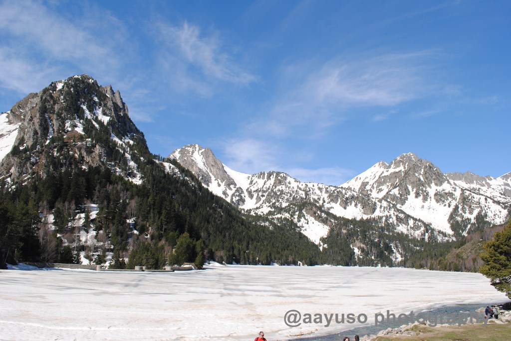 En esta época del año el Lago “Sant Maurici” se encuentra completamente helado, comenzando a deshelarse únicamente sus bordes haciendo peligroso acercarnos a su orilla.