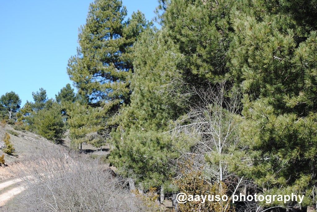 En nuestro camino prácticamente no encontramos vegetación, salvo alguna escoba dispersa. En la última parte de la ascensión podemos encontrar pinos con signos del comienzo de la primavera, ya que albergan en los extremos de sus ramas las temidas orugas.