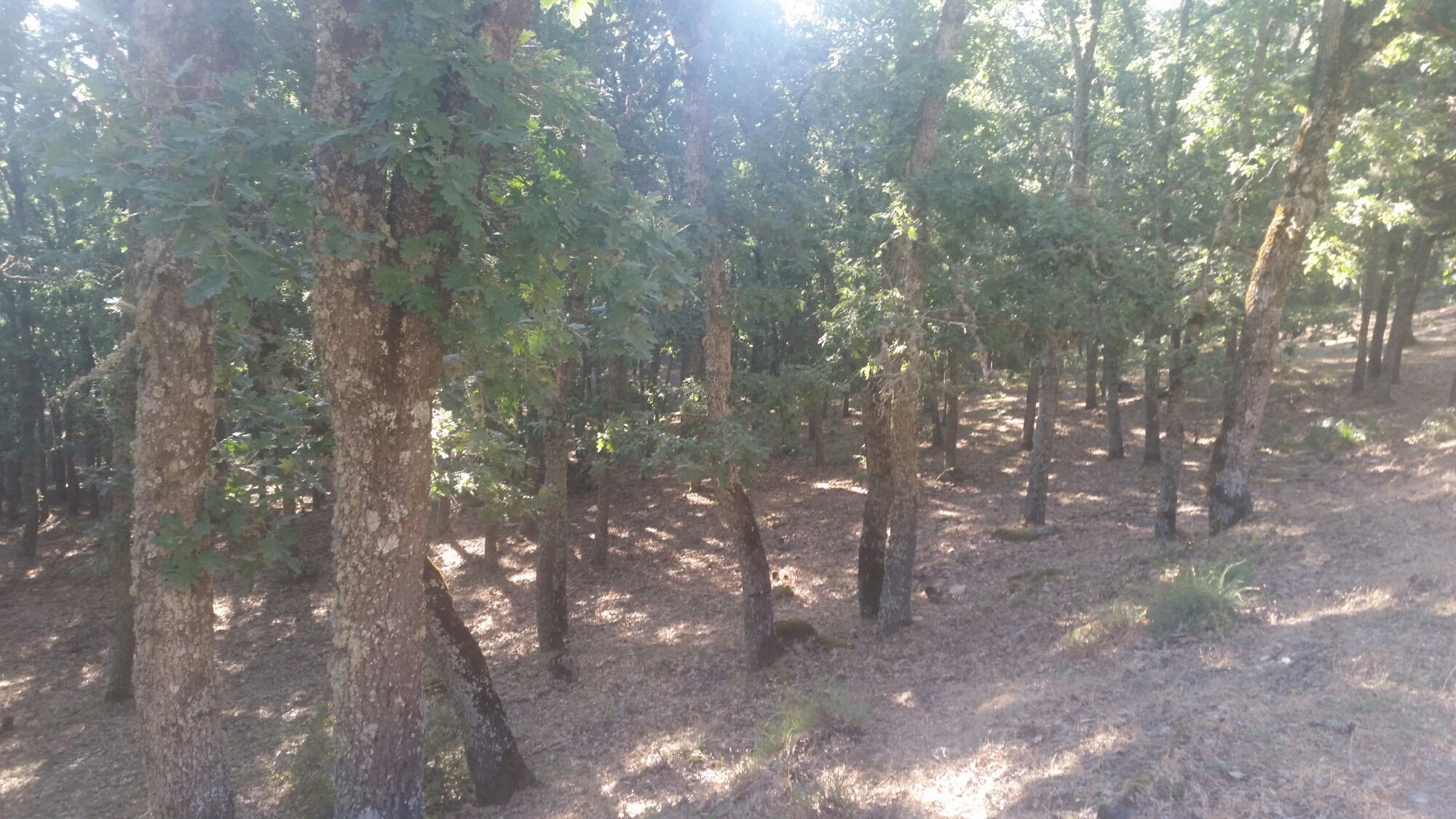 Seguimos este camino forestal medio asfaltado entre magníficos ejemplares de pinos y robles.