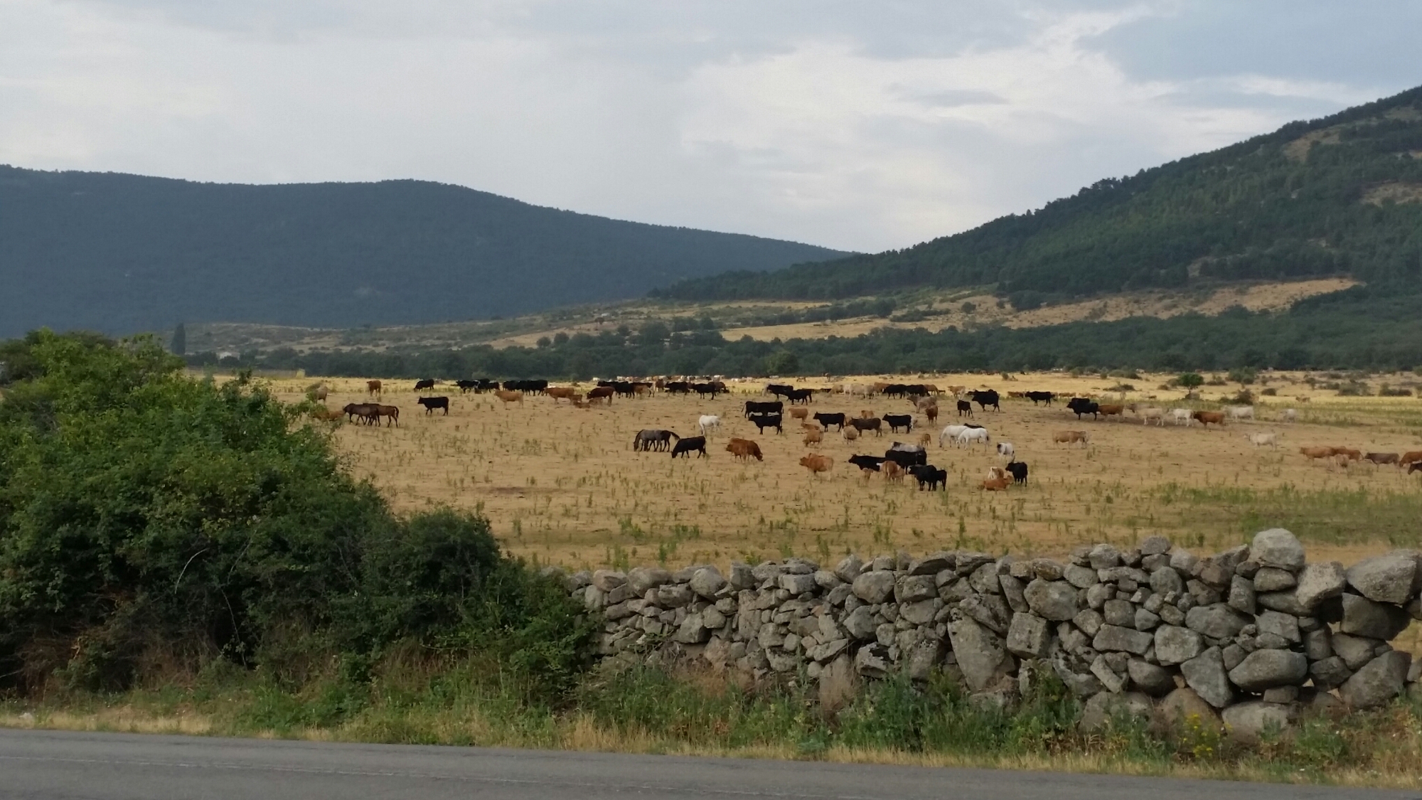 En esta ocasión el recorrido lo vamos a realizar a través caminos, entre muros de rocas, que delimitan las distintas parcelas, y observados por los robles y encinas, que en esta zona baja, son más numerosos que los pinos.