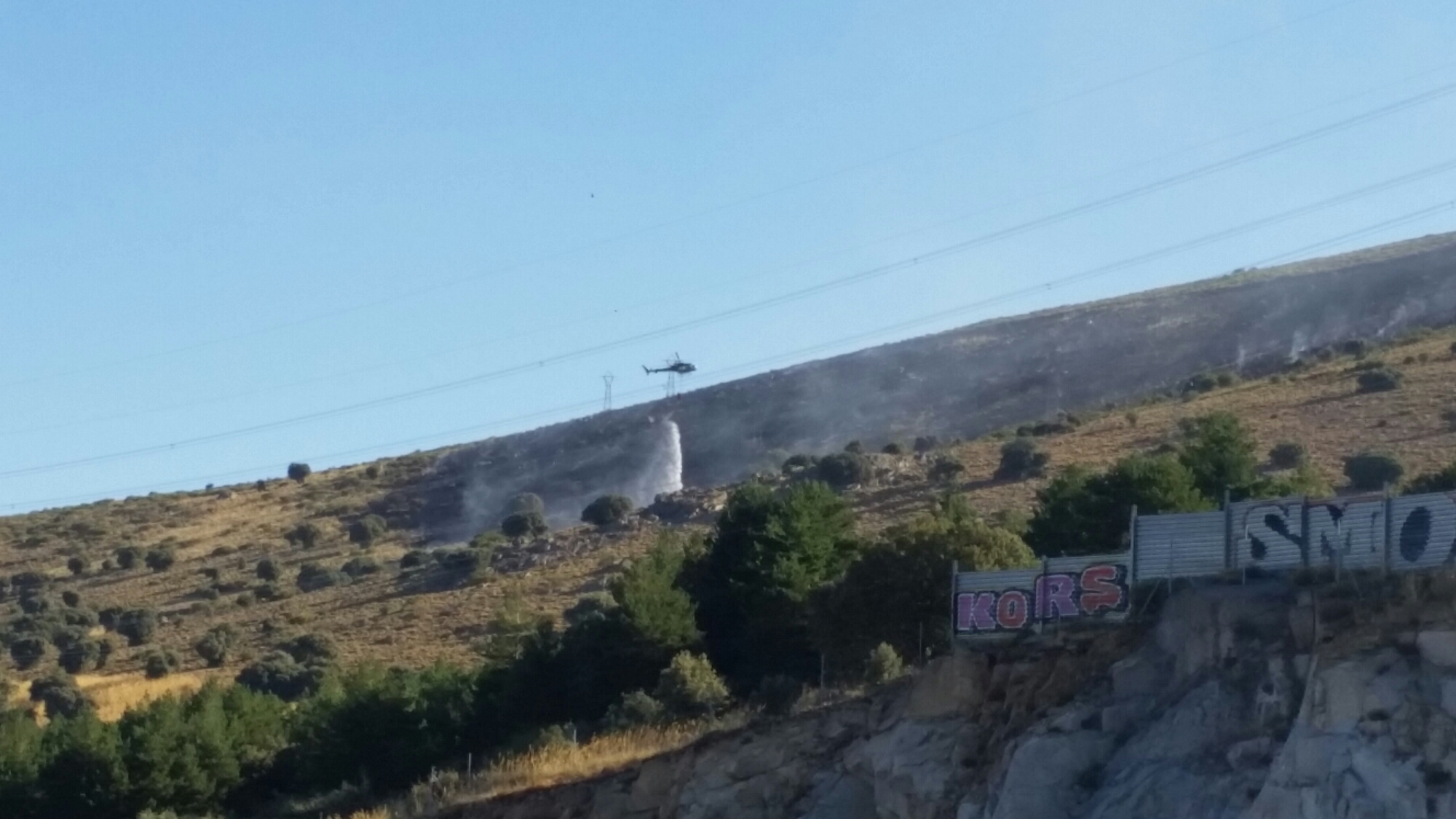 Hoy hemos intentado salir a recorrer la bonita Sierra del Quintanar, pero según llegábamos vimos lo que parecía ser una neblina en las cumbres, pero que en realidad era un pequeño incendio justo enfrente de la urbanización de Los Ángeles de San Rafael donde íbamos a iniciar el recorrido.