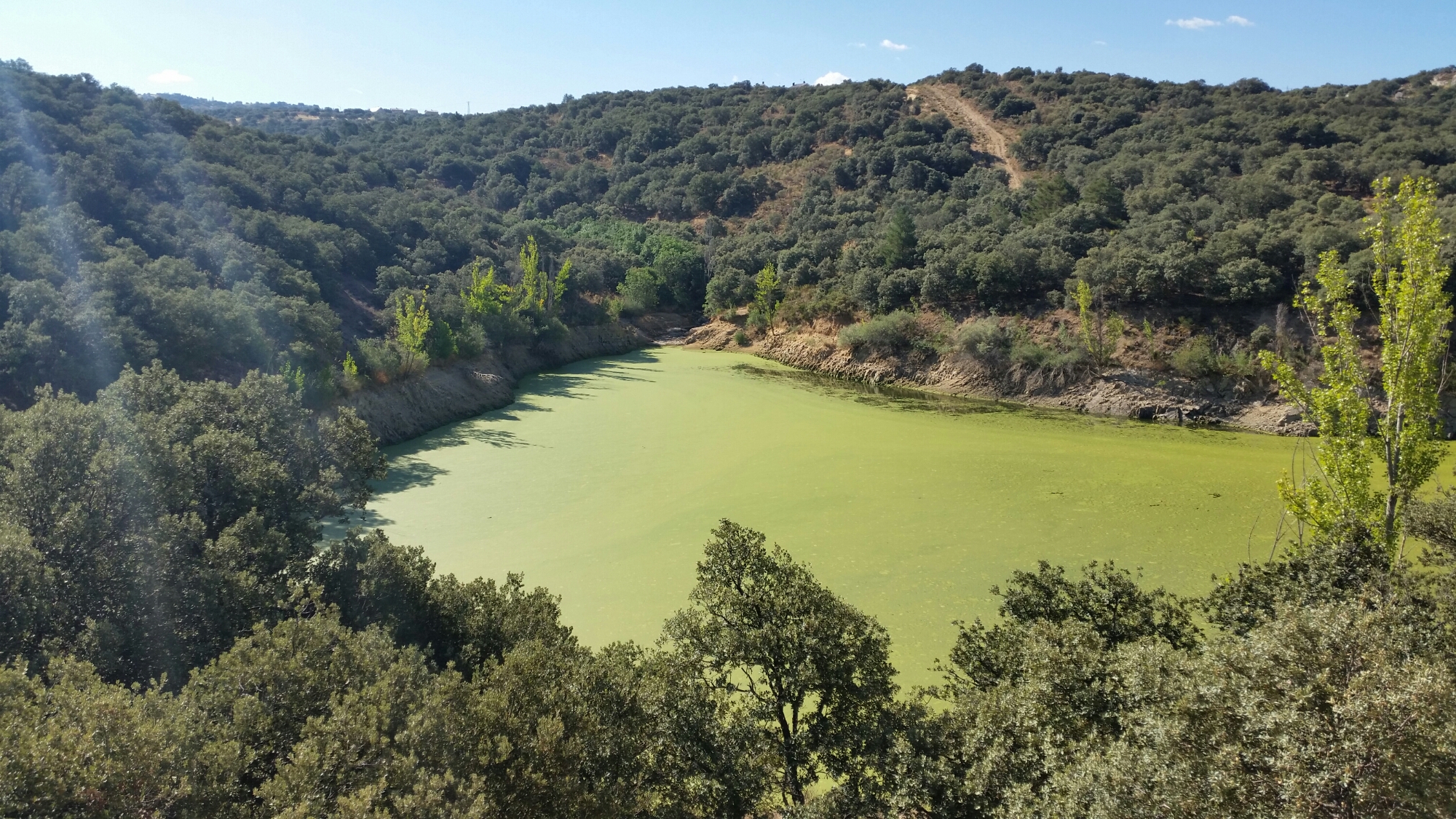 Esta ruta discurre por un encinar situado por debajo de la urbanización, pasa por el pequeño embalse de abastecimiento del Carrascal y llega hasta la presa del embalse de Los Ángeles donde se encuentra un área recreativa.