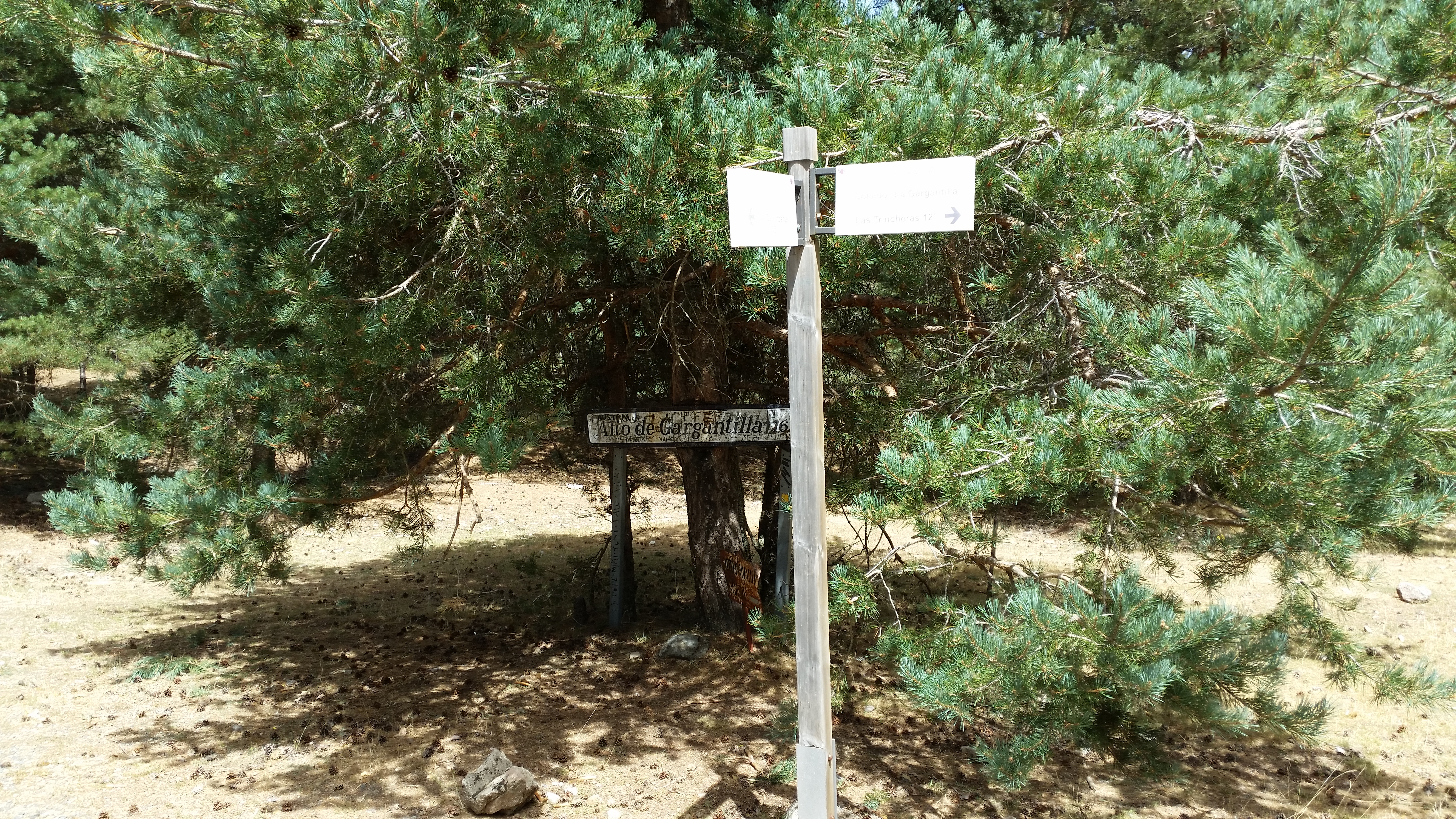 A mitad de camino, un cartel en una bifurcación nos indica la dirección para llegar a dicha Peña, pero nosotros nos saldremos de la ruta original para tomar el camino de la izquierda y seguir ascendiendo hasta llegar al límite de las Comunidades Autonomas de Castilla y León y Madrid.