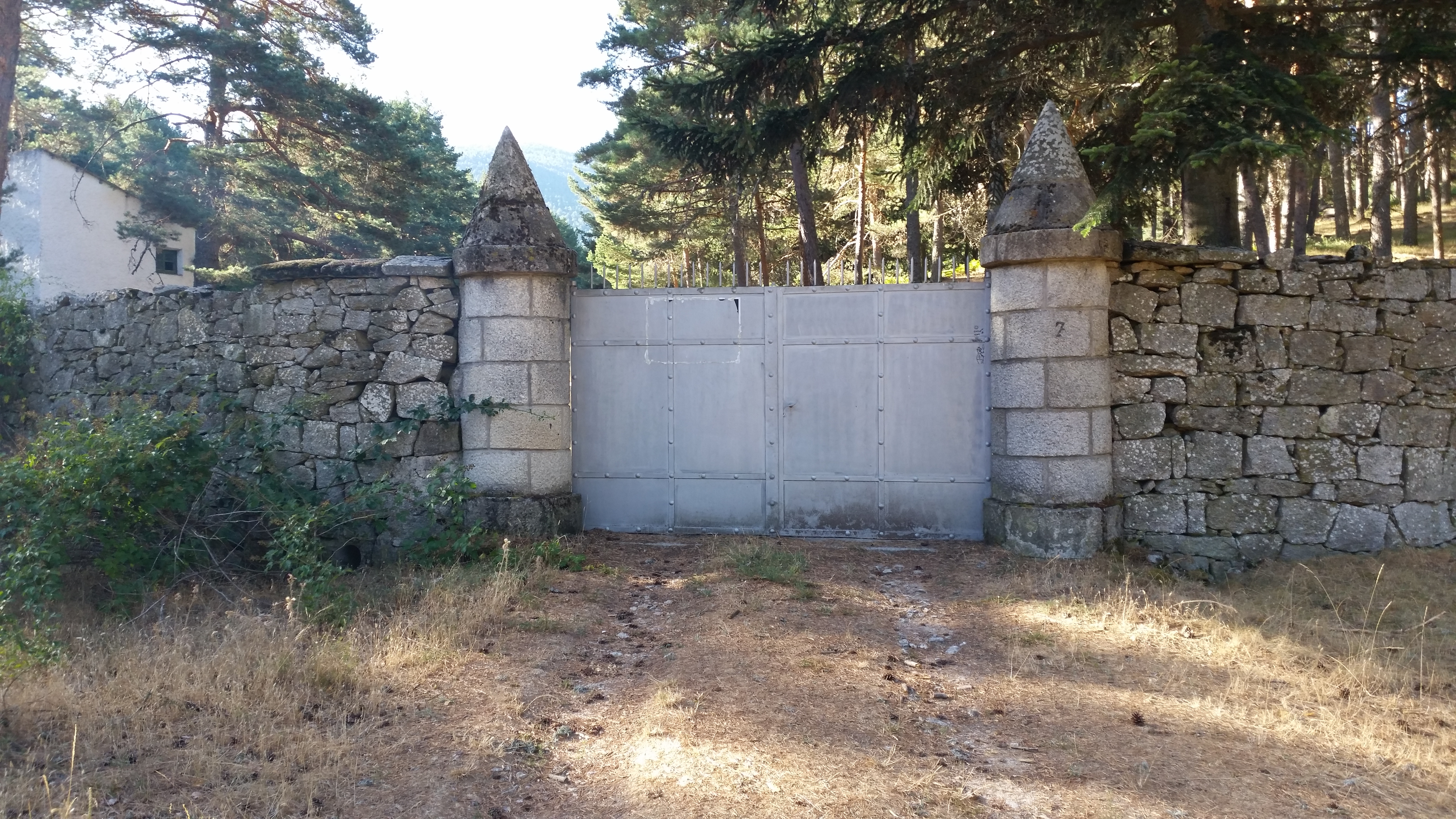 Este camino nos hará atravesar el camino forestal asfaltado que une los nucleos de El Espinar con San Rafael. Nosotros continuamos, cruzando el arroyo dejando a nuestra derecha una antigua puerta de la finca de Las Monjas, pasando una de las cancelas que evita la salida del ganado.