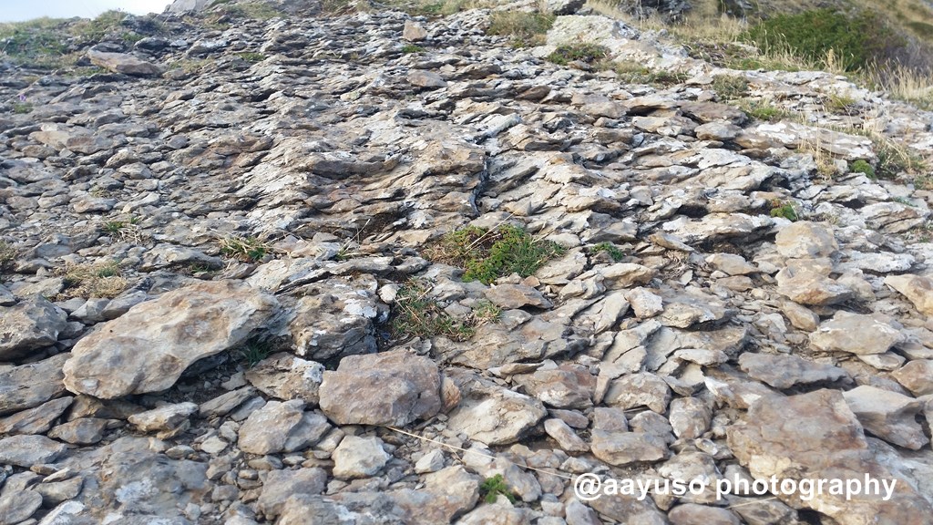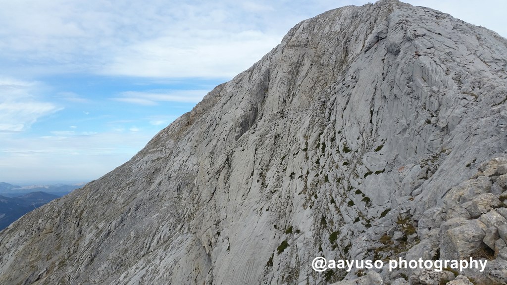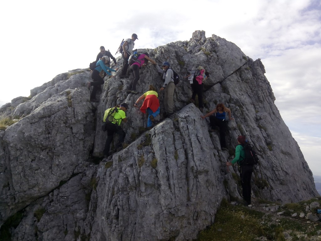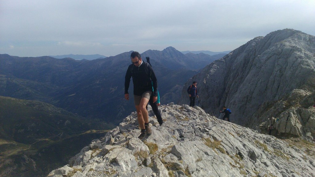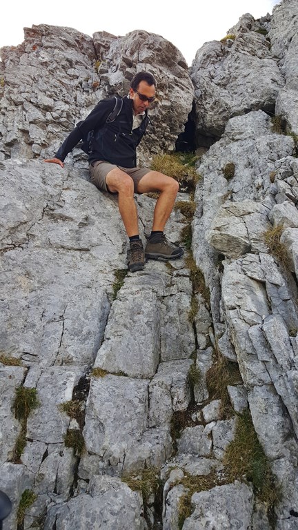 Hubo parte del recorrido que lo realizamos prácticamente tumbados, escalando y descendiendo sobre la maciza roca. Tuvimos la suerte de que no había viento puesto que sino la ascensión se habría complicado enormemente.