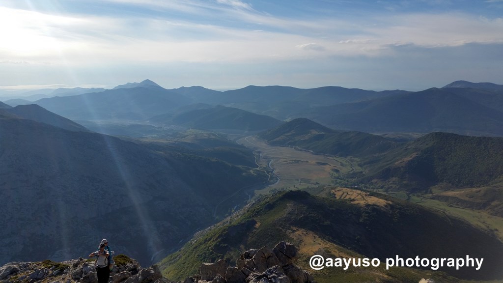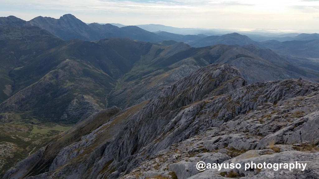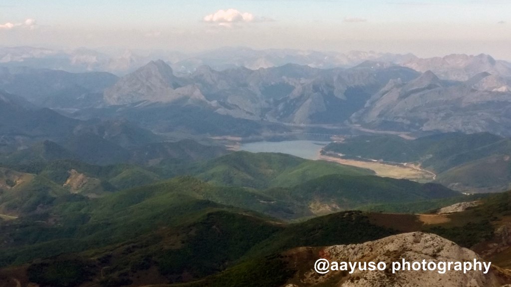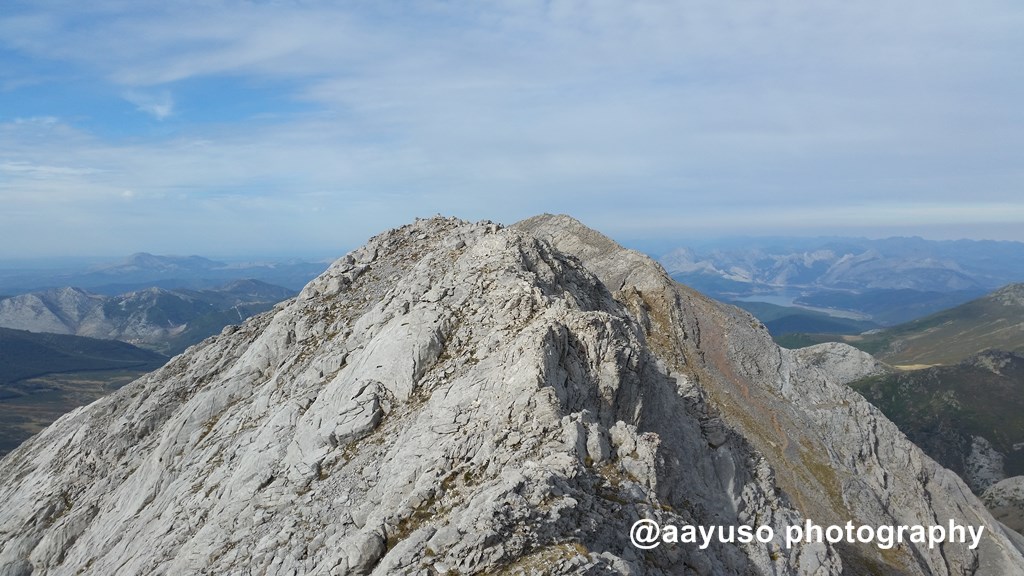 Pero nos faltaba el descenso. La bajada se puede realizar por distintos lugares, cada uno de ellos con su dificultad. Continuamos en la misma dirección, por la arista, para girar hacia la derecha y bajar por la cara noroeste. En esta posición podemos divisar el majestuoso pantano de Riaño, junto con los imponentes picos Yordas y Jilbo.