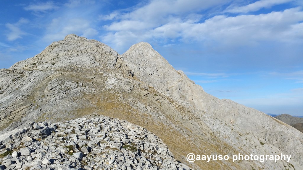 Desde el principio comprobamos la dureza del ascenso teniendo que poner las manos en más de una ocasión. Hay tramos de pedrera complicados de ascender, donde se nos van las botas con tanta roca suelta. Según ascendemos las vistas son increíbles.