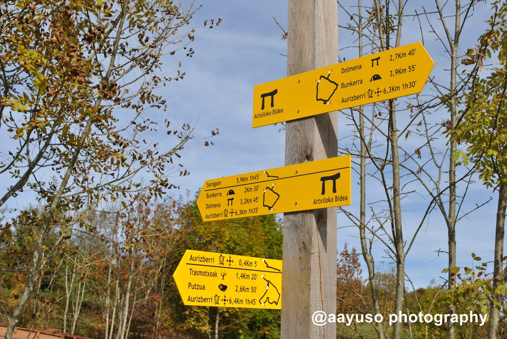 Salimos del Camping Urrobi donde nos alojamos durante todo el fin de semana, en dirección a la base del monte Menditxuri («monte blanco» por ser el primero que se cubre de nieve en la época invernal). Cogemos dirección al pueblo del Espinal por un sendero bien marcado paralelo a la carretera.