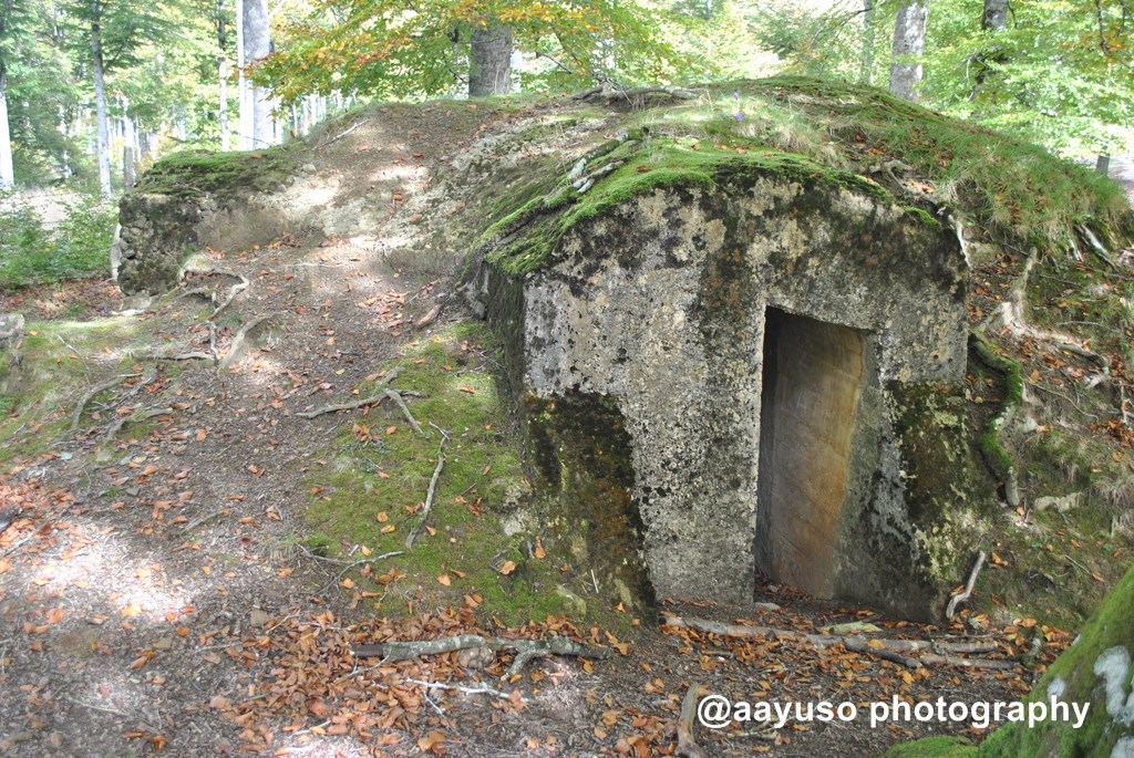 A medio camino del pico nos encontramos con un Bunker de la línea P. Llamada oficialmente Organización Defensiva del Pirineo, la guía nos contó que fue construido para evitar que los maquis (guerrilleros antifascistas de resistencia en España) penetraran en el territorio español. Esta linea estaba compuesta por 10.000 búnkeres.