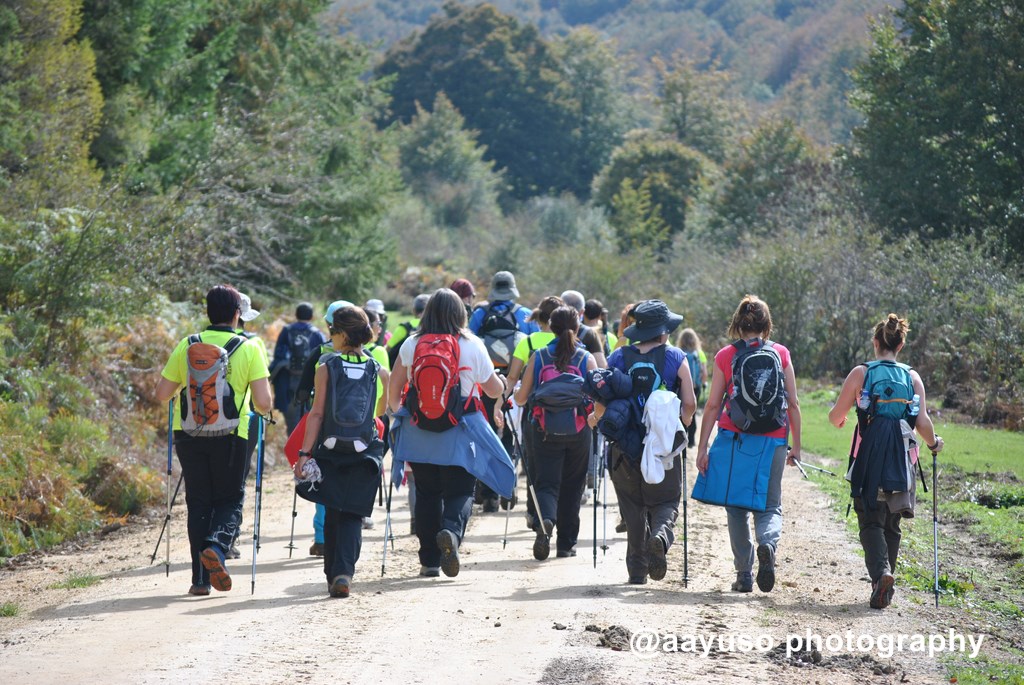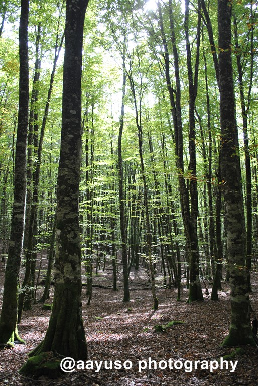 Después de un par de kilómetros caminando entre pastos, giramos a nuestra izquierda para adentramos en un profundo y enigmático hayedo. A las hayas les gusta la niebla y la humedad, temperaturas no muy frías y tener las raíces superficiales. Llegaron por el Ebro hace 3000 años y desde entonces pueblan nuestros montes.