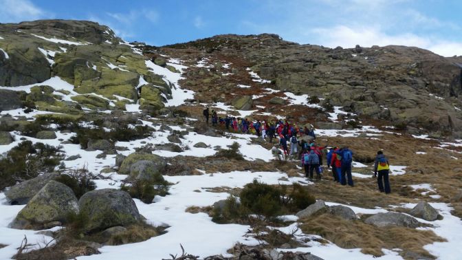 La salida la comenzamos desde la plataforma de Gredos, a través de una senda de bastante desnivel, hasta llegar al refugio de Reguero Blanco.