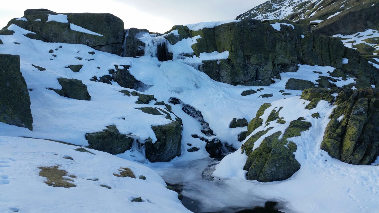 Desde el refugio nos acercamos al Prado de las Pozas, sobre el precioso manto blanco del Llano Barbellido.