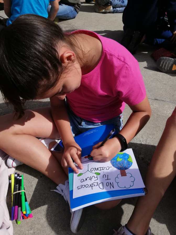 En cada clase, de 1º a 6º de Educación Primaria, cada niño/a ha elaborado un eslogan con temática medioambiental y elegido el que más guste para representar a toda la clase. El eslogan ganador se ha colocado en la puerta de la clase durante toda la semana para que el resto de grupos lo pudieran ver.