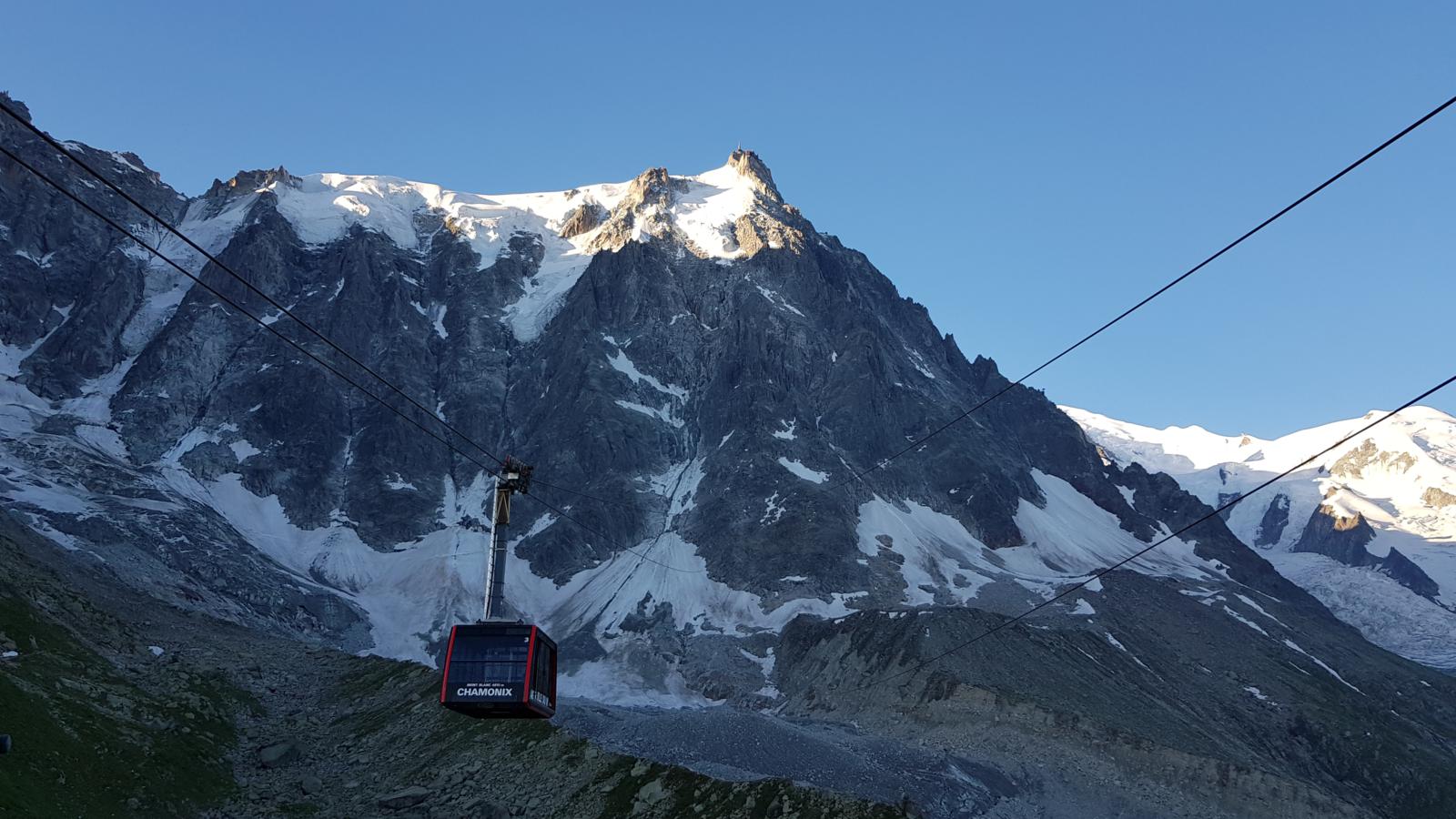 Tomamos el teleférico desde chamonix, situado a 1035 m de altitud, sobrevolando un precioso bosque para alcanzar en 10 minutos el Plan de L’Aiguille, a 2317 metros de altitud, punto intermedio de la ascensión. Los teleféricos en este valle son muy caros, rondando los 60-70€. Existe la posibilidad de coger un bono diario, que por 67€ te permite montar en cualquier teleférico del valle y el tren rojo que sube al glaciar de Mer de Glace, durante toda una jornada.