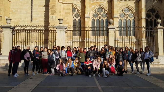El primer día del programa, después de desayunar y ordenar las habitaciones, lo pasamos en la bonita e histórica ciudad de León. Una localidad de aproximadamente 130.000 habitantes que vive básicamente del sector servicios, incluido el turismo. La ciudad tiene más de 2000 años con su origen en un campamento romano, legio VII, de donde toma su nombre. La ciudad es paso de peregrinos del Camino de Santiago.