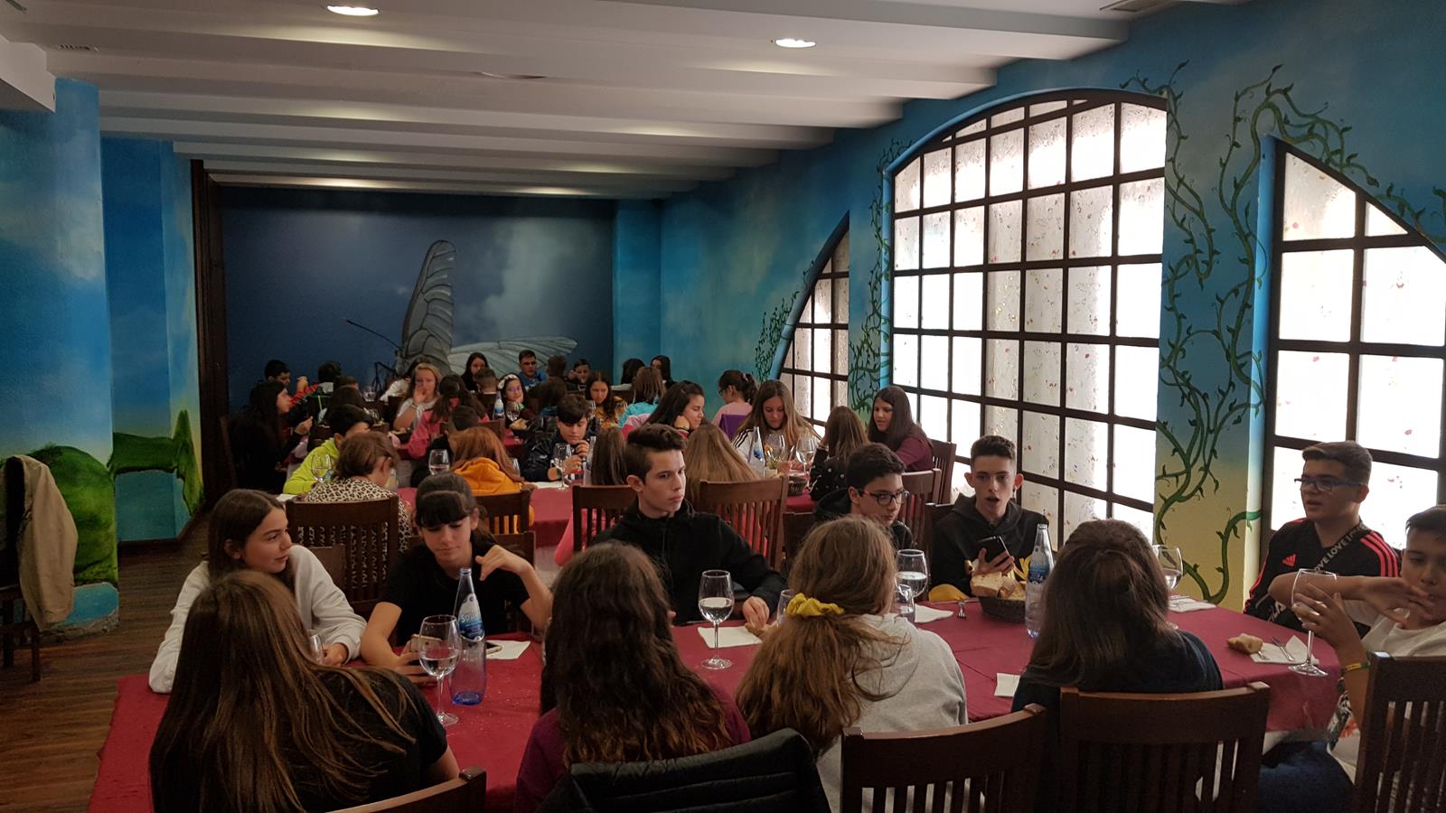 Después de cenar presentamos nuestra ciudad y nuestro centro al otro instituto con un video con la música de nuestra compañera Eva, en sus tiempos con el grupo Chloe. Al finalizar la velada les hicimos entrega de unos bonitos presentes para que los llevaran a su tierra.