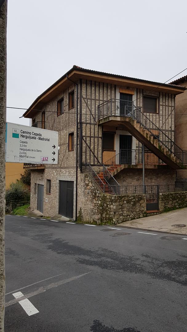 En el pueblo de estrechas y empinadas calles aprovechamos para hacer nuestra comida. Volvemos realizando un par de kilómetros por carretera, hasta salirnos de ella por un camino embarrado a nuestra izquierda. Volvemos del nuevo al bosque, hasta llegar a una pista cementada y ascendente de nuevo rodeados de viñas y árboles frutales, hasta llegar de nuevo a Madroñal.