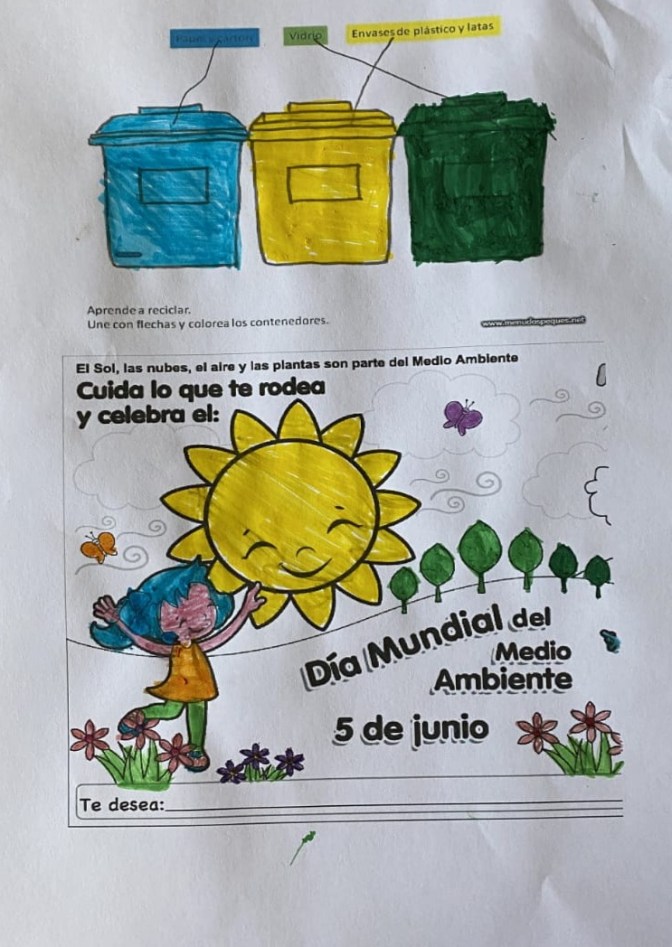 Como actividad final, para conmemorar el 5 de junio, Día Mundial del Medioambiente, teníamos que presentar unos dibujos sobre como llevar esto a la práctica desde nuestras casas. Debido al confinamiento forzoso del estado de alarma debido a la pandemia por COVID-19, estos dibujos los hemos mandado de forma online.