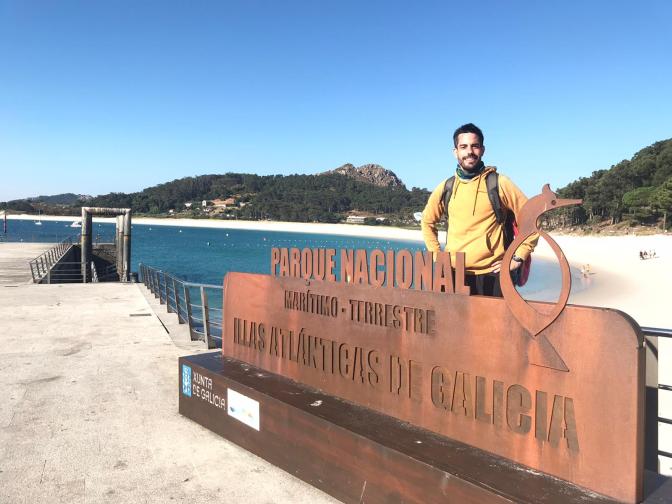 Este día amanecimos en un aparcamiento de caravanas en Cangas de Morrazo. Nos tocó levantarnos a las 7 de la mañana. El madrugón merecía la pena, a las 8 y media salía nuestro Ferry con destino a las Islas Cíes donde íbamos a pasar el día. Antes de ir, solo conocía estas islas por su nombre. Pero esconden un paisaje natural que probablemente pueda rivalizar con los destinos más turísticos. En el Ferry viajamos con todas las recomendaciones COVID, a saber: mascarilla todo el tiempo, distancia de seguridad entre grupos y gel al entrar y salir. Paramos en el puerto de Vigo antes de llegar a la isla.