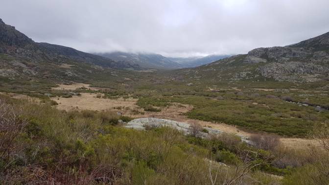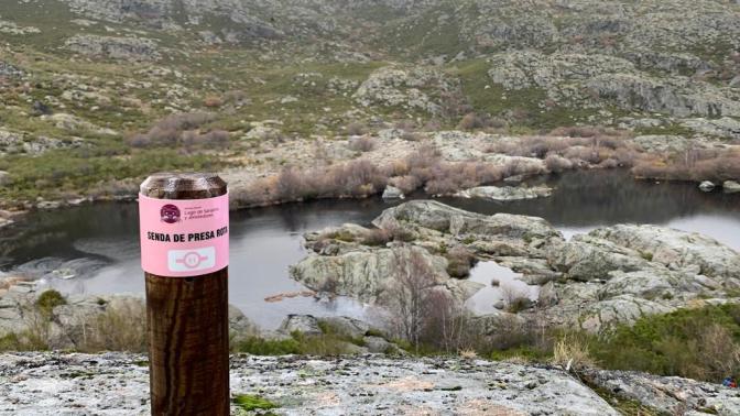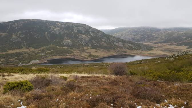 La primera parte del trayecto tomaremos la senda que va hasta Peña Trevinca, uno de los picos más altos de la comarca, y que subiremos en breve. La parte inicial itinerario discurre, a través del collado de La Ventosa, por senderos inundados por las últimas lluvias hasta el embalse de Vega del Conde, con un terreno muy aislado y desolado.