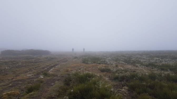Una pena que la niebla y las nubes bajas nos impidan contemplar la cadena montañosa que tenemos frente a nosotros.