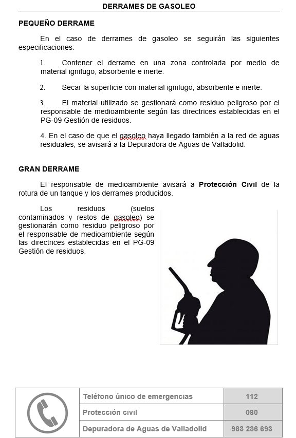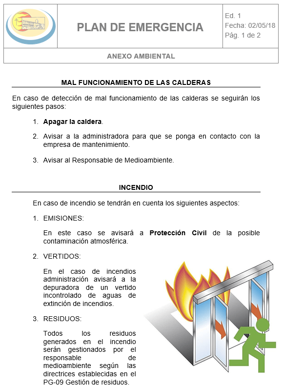 De cara a identificar y responder a accidentes potenciales y situaciones de emergencia, y para prevenir y reducir los impactos ambientales que puedan estar asociados con ellos, en el centro se ha establecido un Plan de Emergencia Ambiental, que estará anexo al Plan de Emergencia del Centro.