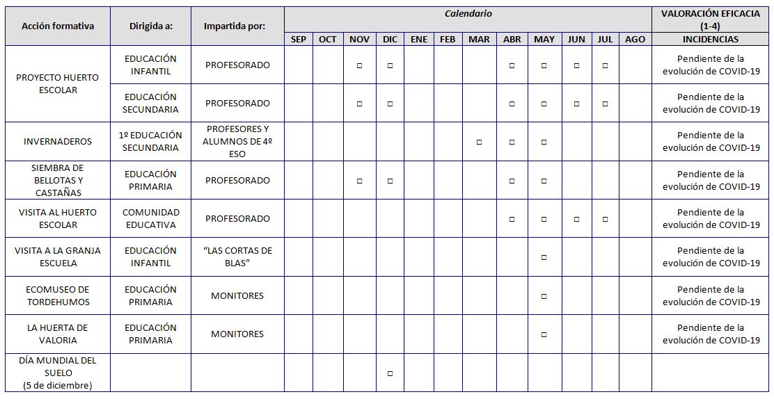 Muchas de estas actividades no podrán llevarse a cabo debido a la pandemia por COVID-19, pero buscaremos otras que puedan concienciar a nuestros alumnos.
