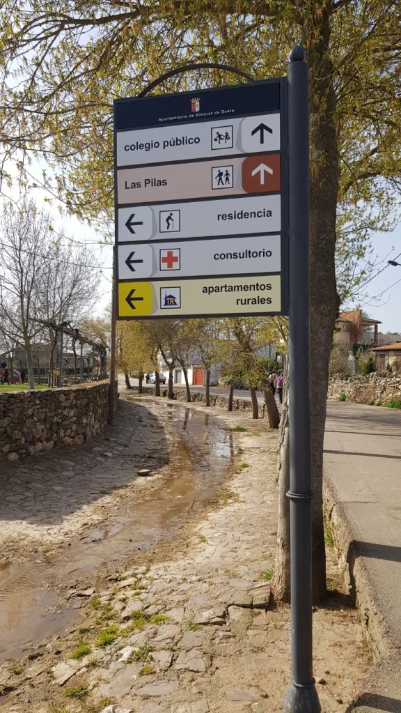 La salida la realizamos del pueblo de Almazán de Duero, a través de un camino agrícola de tierra frecuentado de numerosos coches, de los que no desean realizar la ruta completa y se acercan hasta un aparcamiento más próximo al rio. El día es espectacular, con 20ºC de temperatura ambiente, idea para caminar.