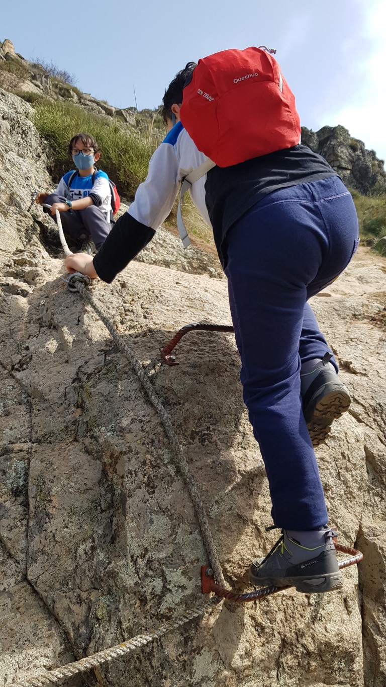 Desde aquí, comenzamos a subir realizando tramos de trepada y destrepada, hasta una poza de aguas cristalinas con tonalidades verdes, ayudándonos de una cuerda y escaleras metálicas.