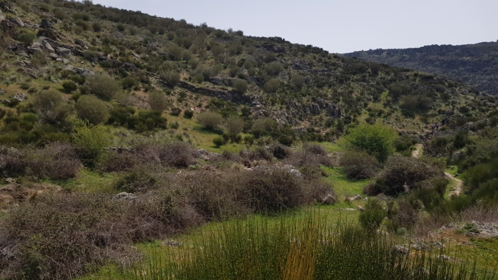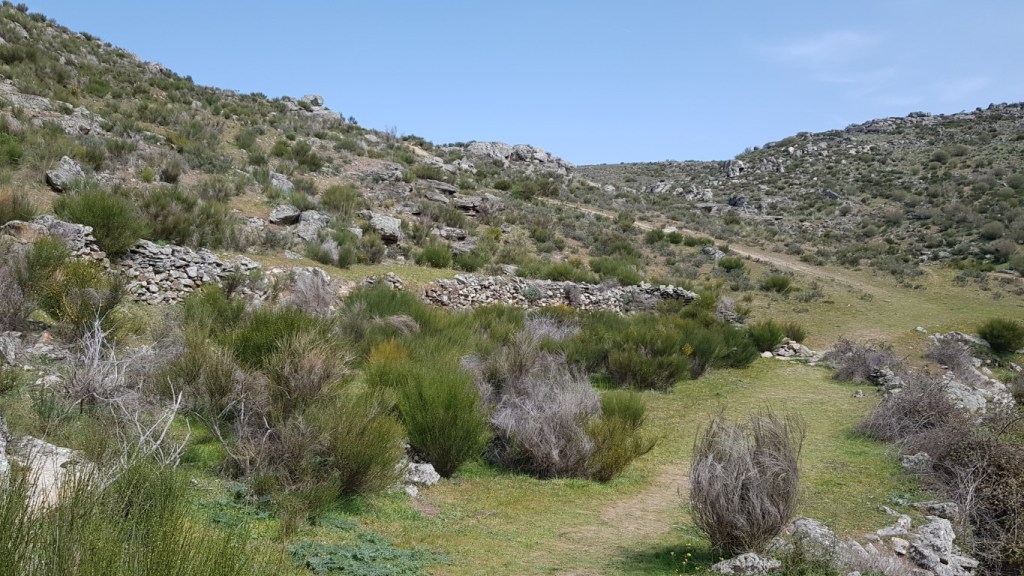 Bajamos a través de una senda dejando a derecha e izquierda numerosas construcciones de piedra derruidas, antiguo poblado de los trabajadores de la mina de estaño.
