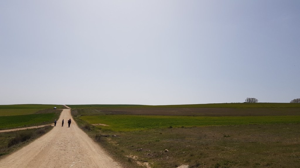 Una vez en la parte superior volvemos a la bifurcación y desandamos el camino agrícola hasta llegar de nuevo al pueblo. Esta parte se nos hace bastante tediosa por el intenso sol que tenemos a estas horas.