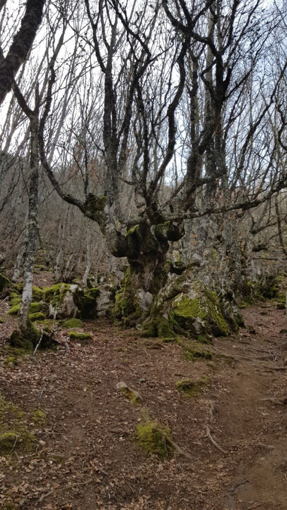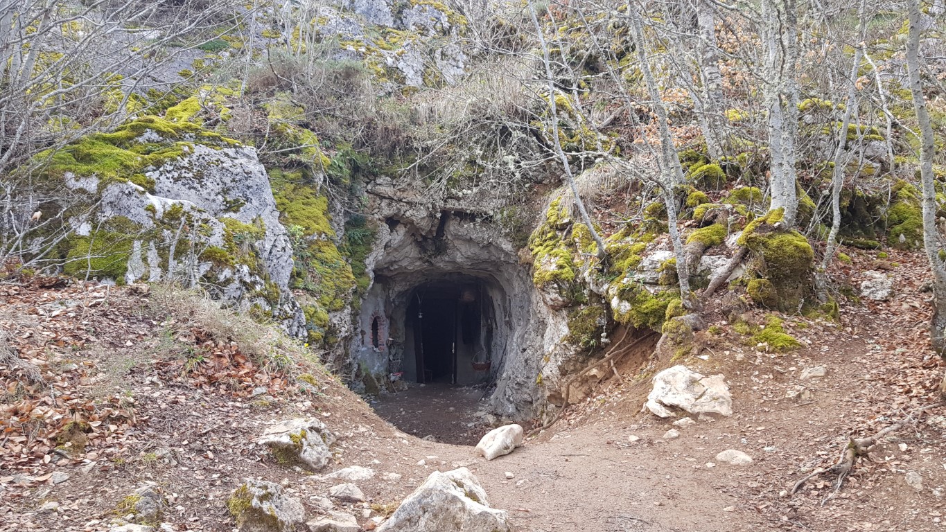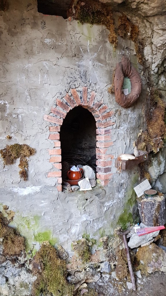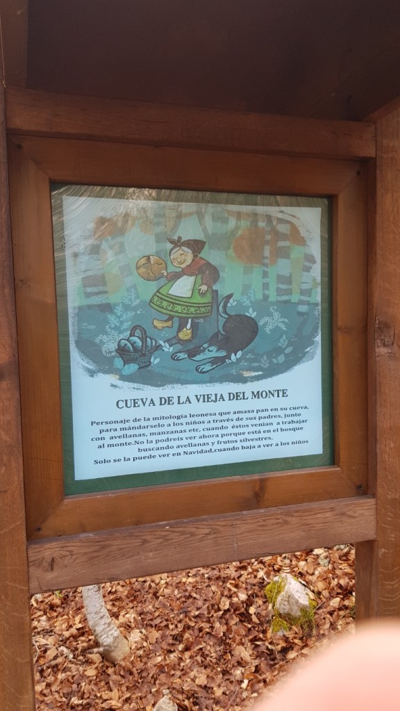 A mitad de subida paramos a visitar la Cueva de la Vieja del Monte, la cual no se encontraba en en esos momentos por que estaba buscando avellanas y frutos silvestres para hacer pan, que luego regalaría a los niños para que se lo diesen a sus padres que estaban trabajando en el bosque.