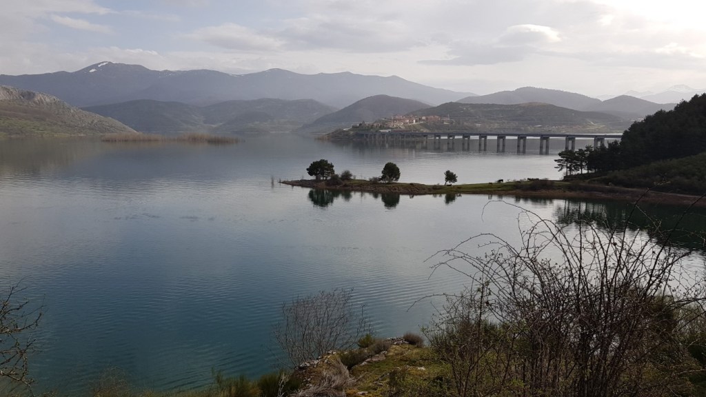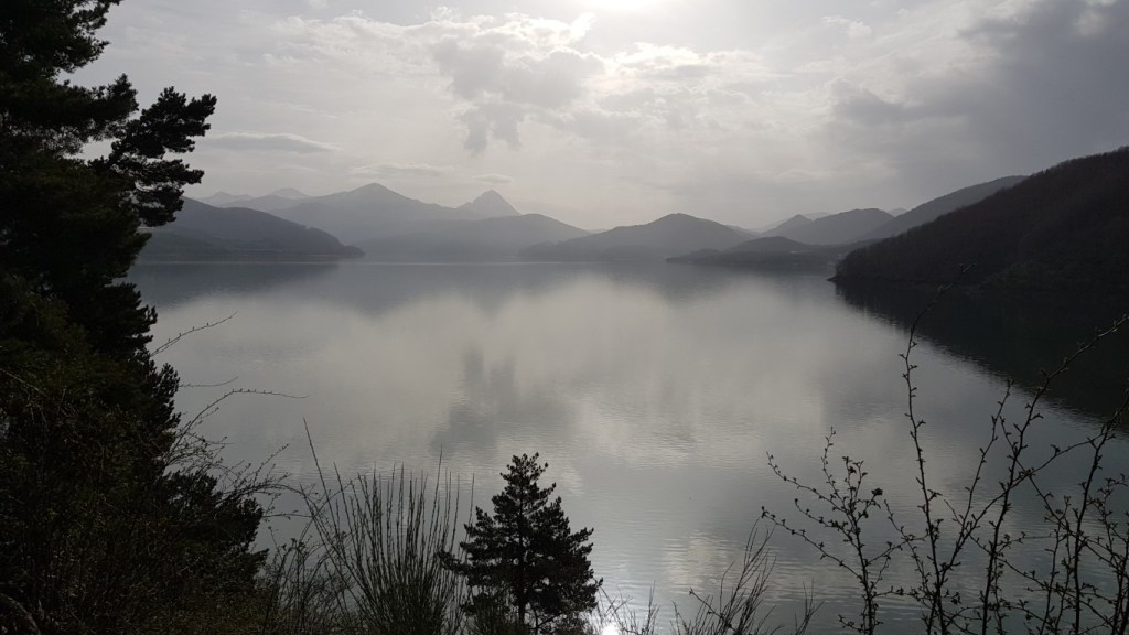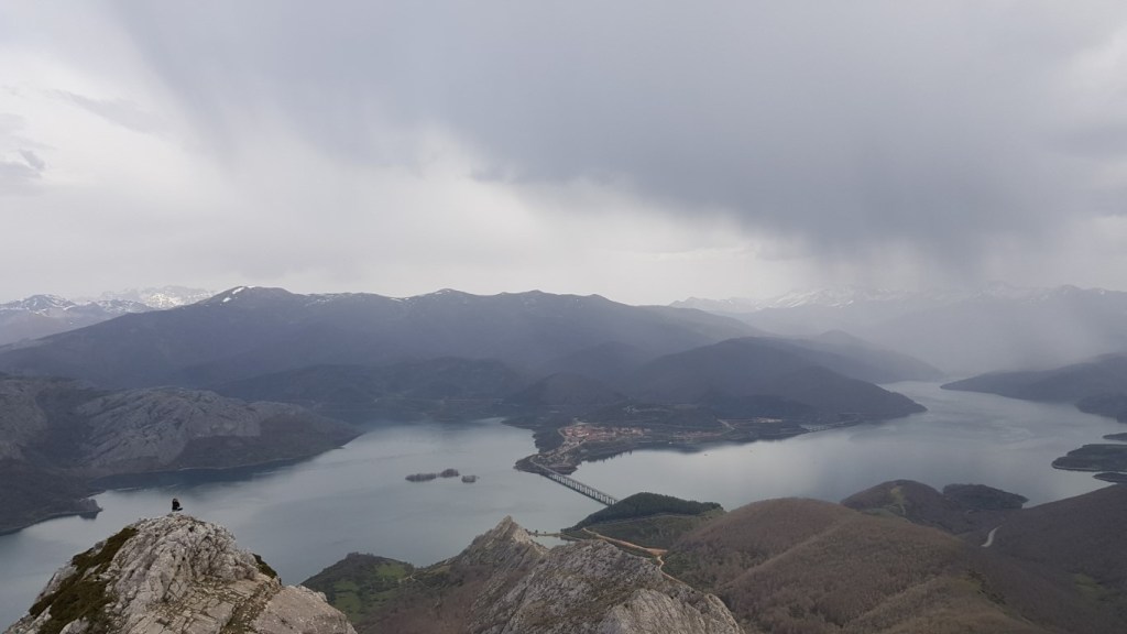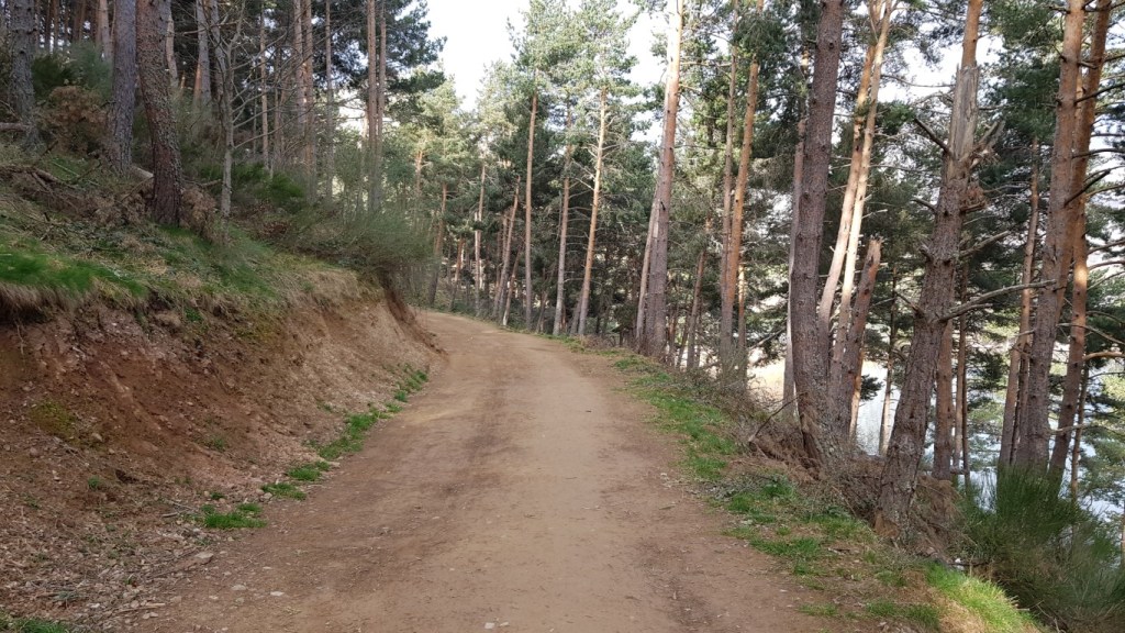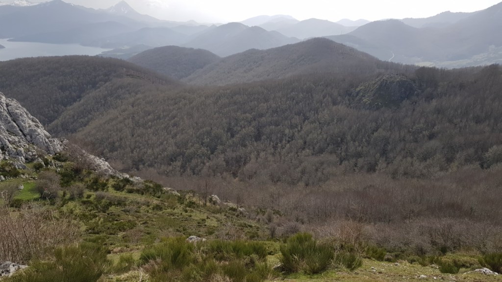 La ruta empieza desde el parking a 1115 metros de altitud sobre el nivel del mar, junto al viaducto de Riaño. Después de ponernos las botas de montaña, salimos a través de una puerta para el ganado, siguiendo el lateral del pantano. Caminamos a través de una pista forestal que rodea un tramo del embalse con un día esplendido.