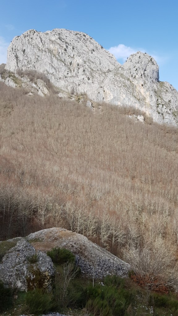 Desde allí seguimos con la exigente ascensión, a través del preciosos hayedo, hasta llegar al collado situado a 1330 metros de altitud, que separa Peña Vallarqué de las Peñas Sarnosas.