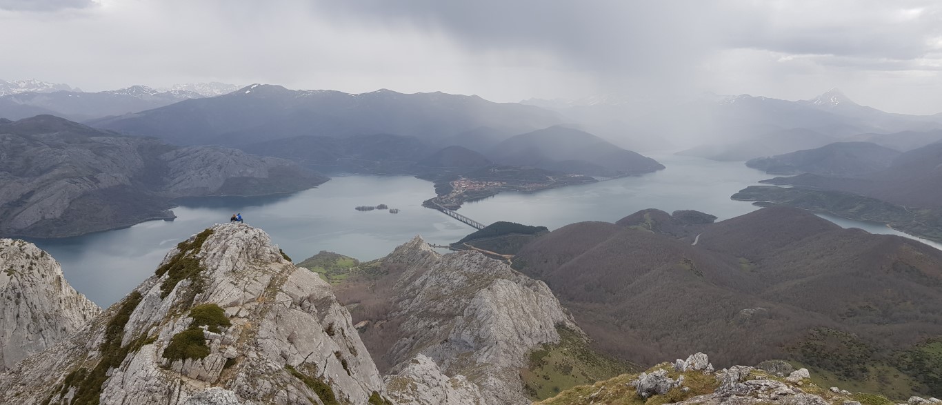 Desde la cima hacia el oeste hay unas vistas espectaculares del Macizo del Mampodre que visitamos ayer. También podemos vislumbrar los Picos de Europa o más cerca, el Pico Yordas. Por supuesto, como no podía faltar subamos donde subamos, vemos el espectacular Espigüete.