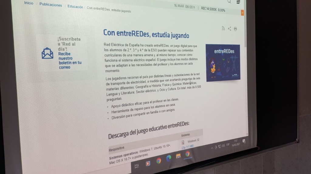 Se trata de un juego digital para que nuestros alumnos puedan repasar sus contenidos curriculares de una manera amena y, al mismo tiempo, conocer cómo funciona el sistema eléctrico español, aprendiendo de la misma manera formas eficientes de ahorro energético.