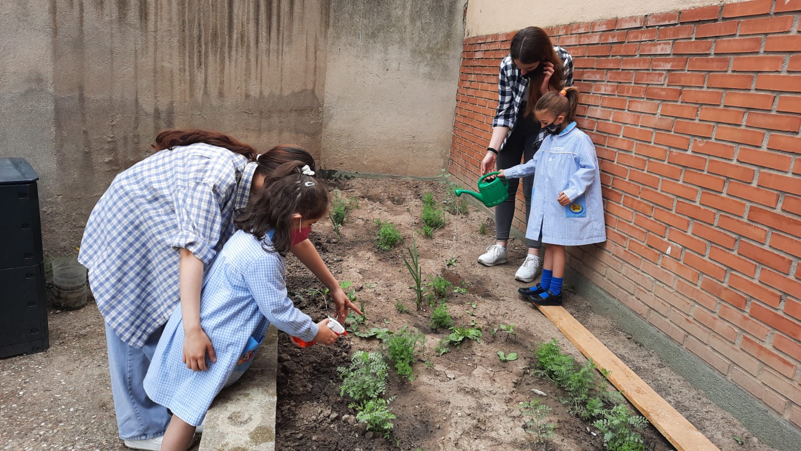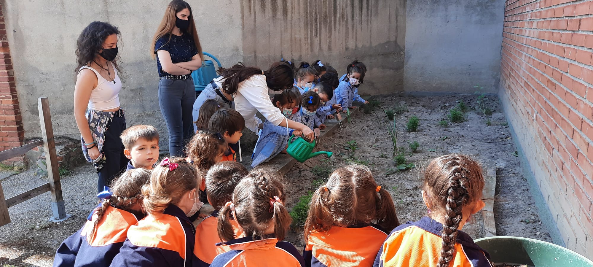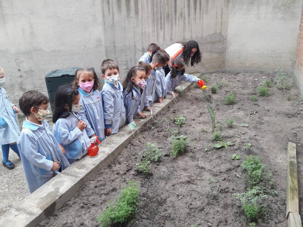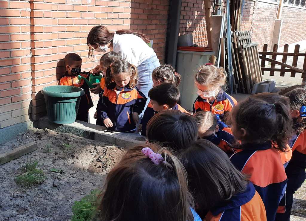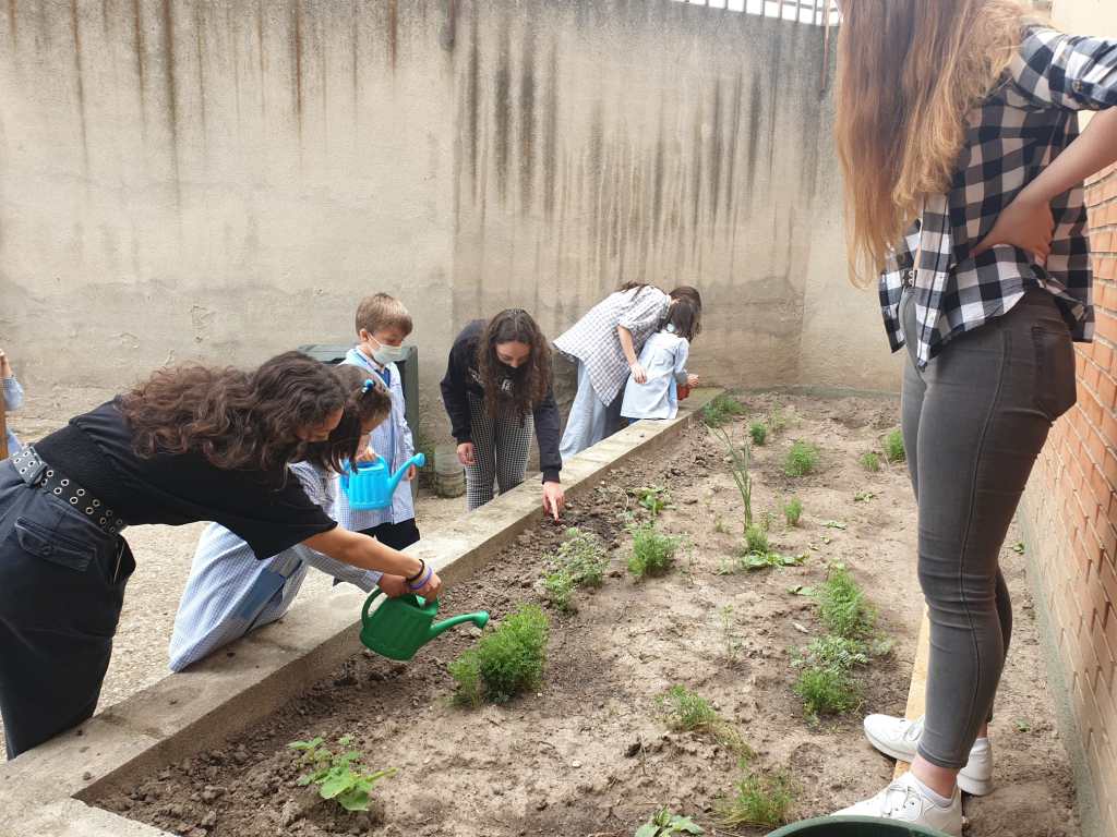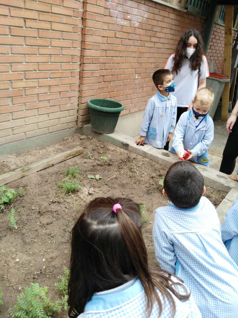 Los alumnos de Educación Infantil, ayudados por los alumnos de Cultura Científica de 4º ESO, continúan con las labores del Huerto Escolar.