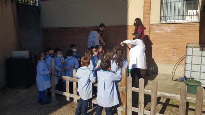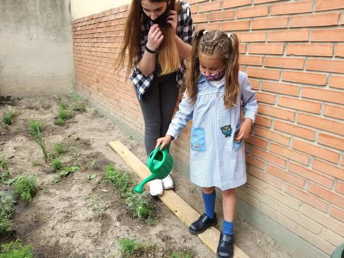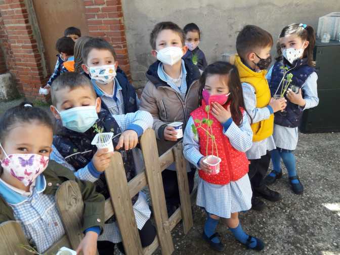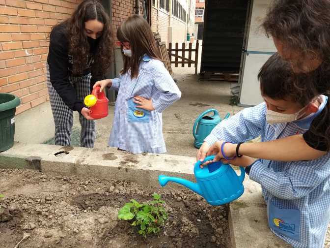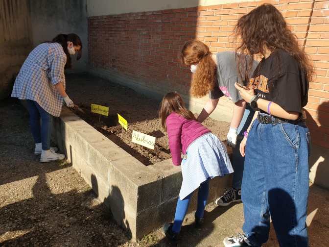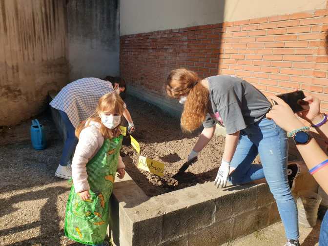 Los días anteriores, los alumnos más pequeños habían plantado en compañía de los alumnos mayores de 4º ESO pequeñas plantas junto con sus profesores y profesoras de Educación Infantil.