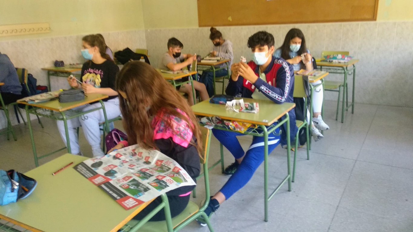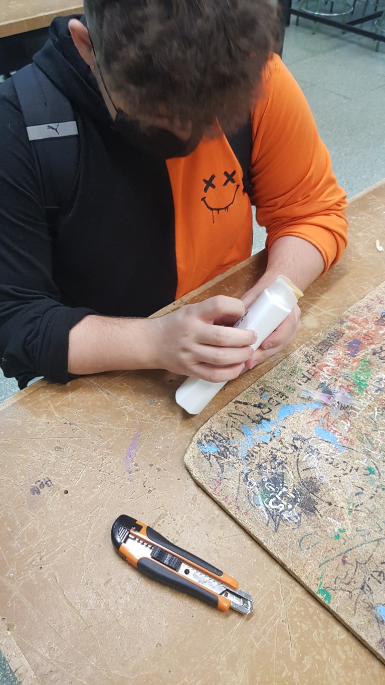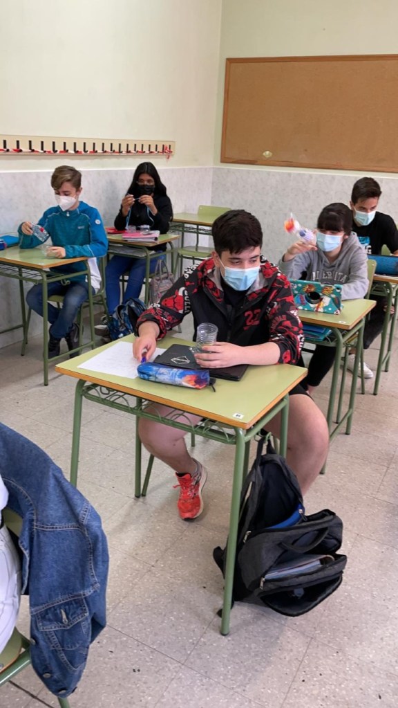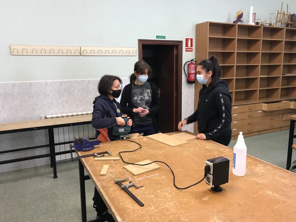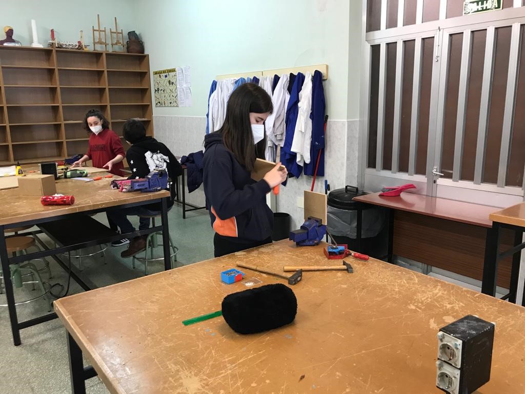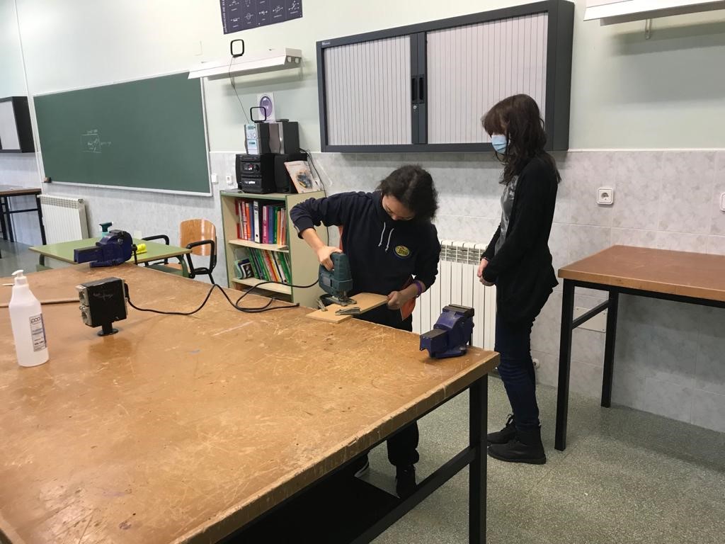 Días antes de las jornadas, un grupo de alumnos estuvo construyendo pajareras con materiales reutilizados con los profesores de tecnología.