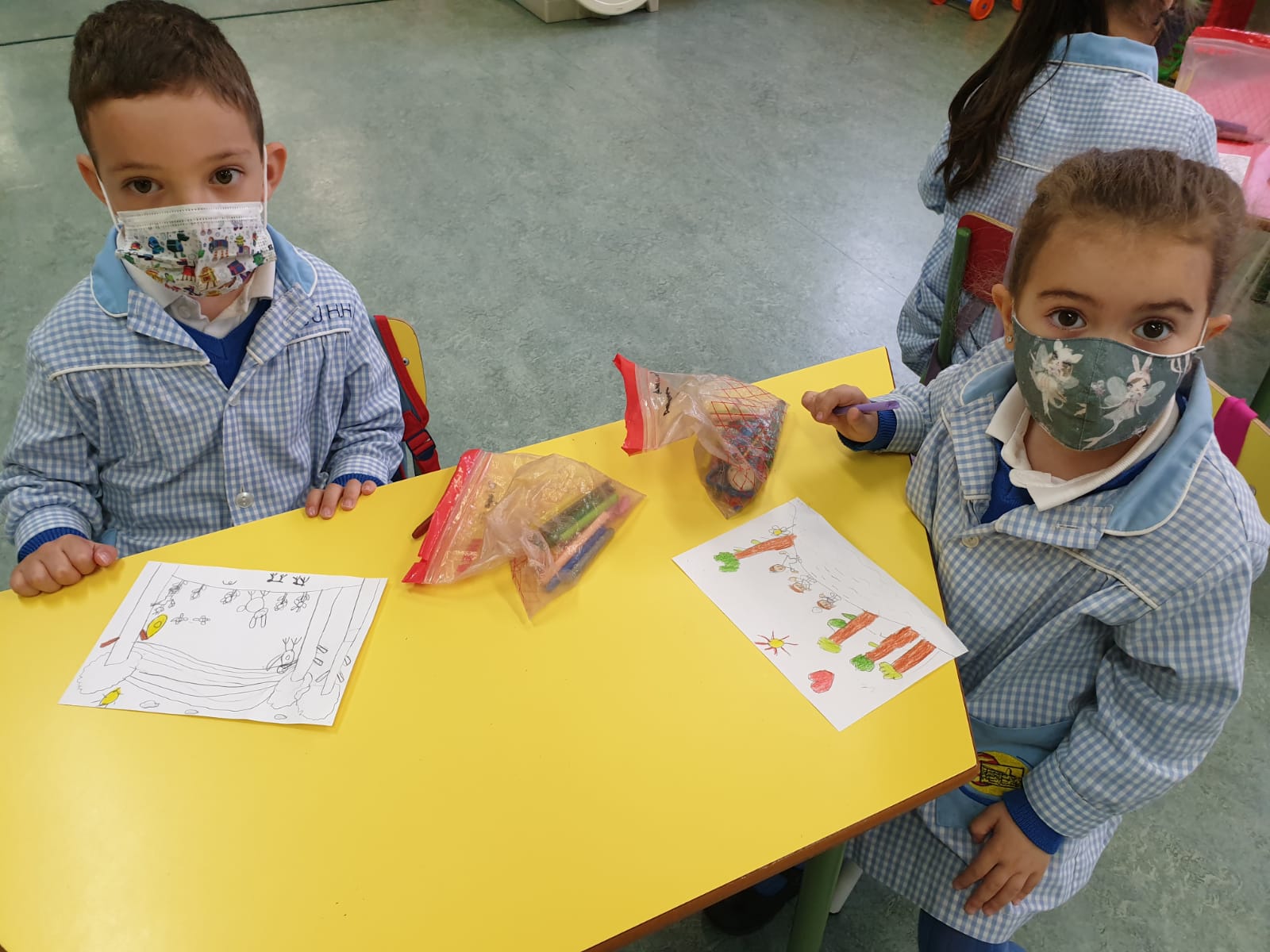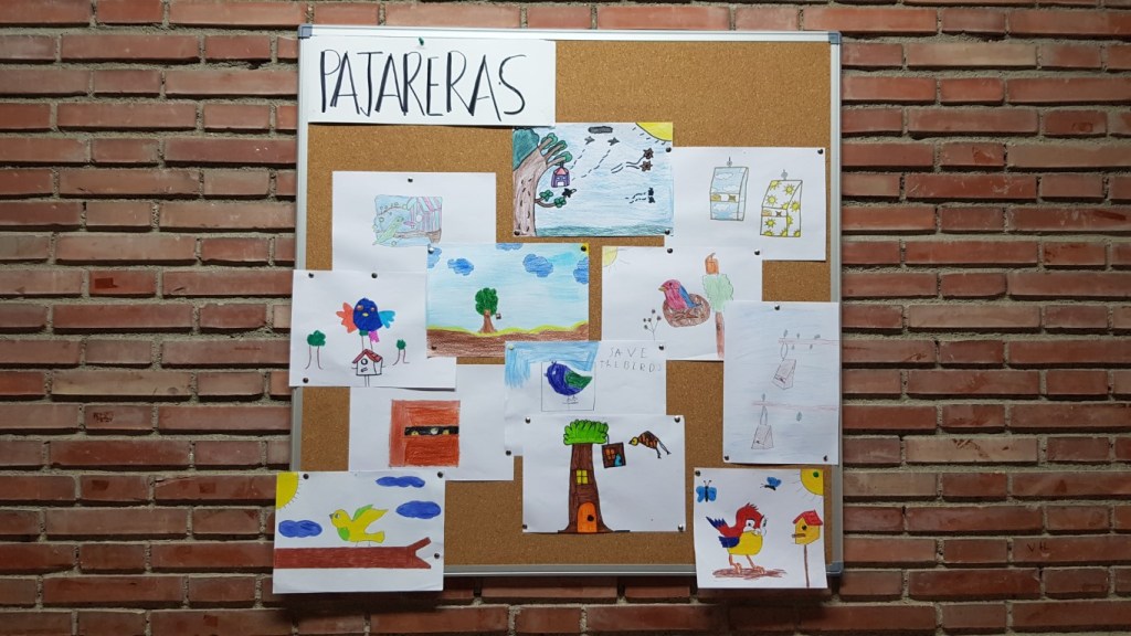 Para finalizar esta actividad dibujaron pajareras con los alumnos que colgamos en los pasillos del Centro.